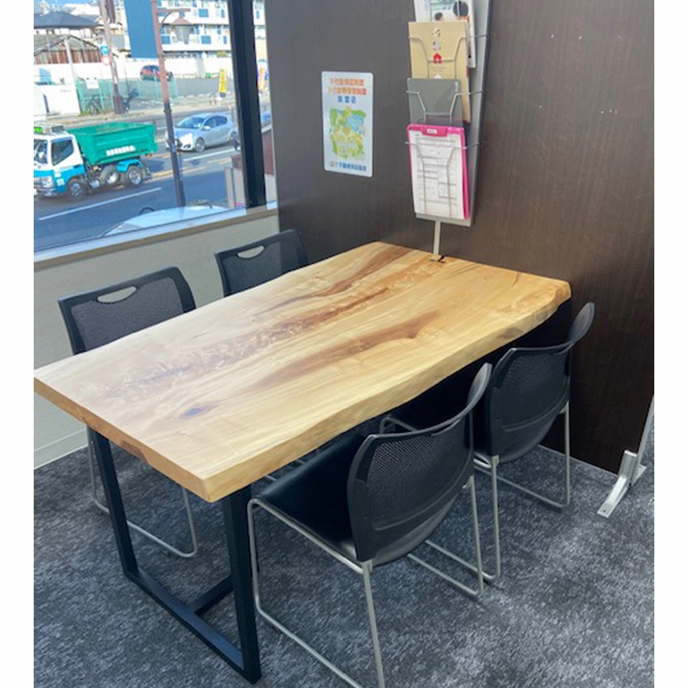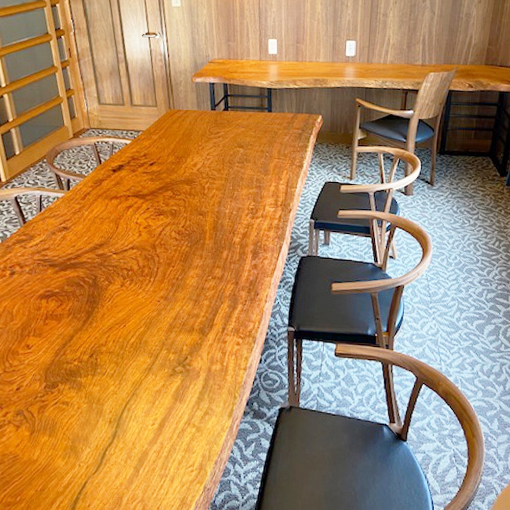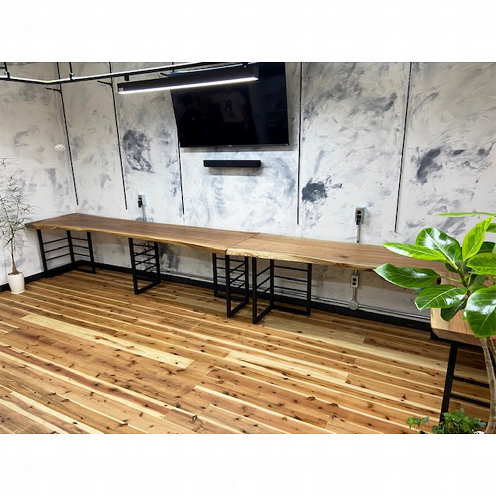新しいオフィスの雰囲気ににピッタリで一枚板が良く映えていますね!
