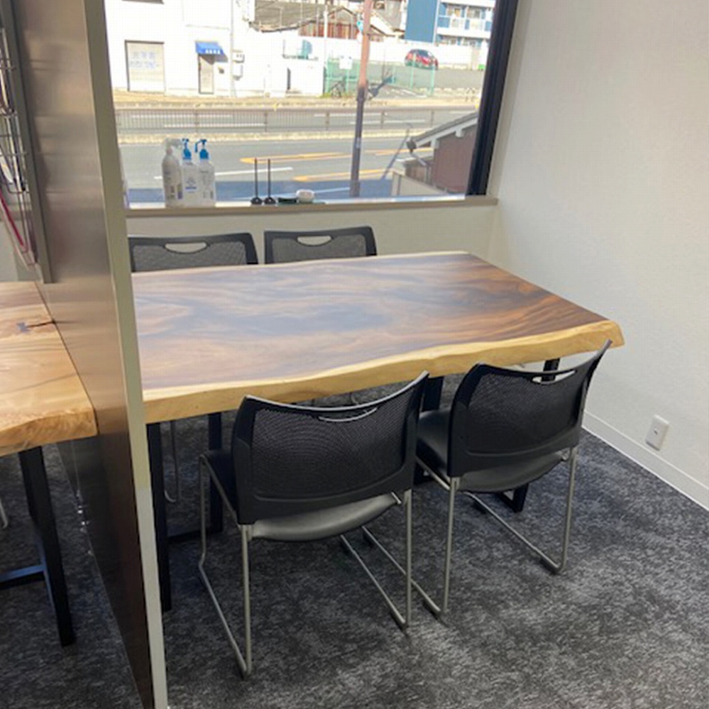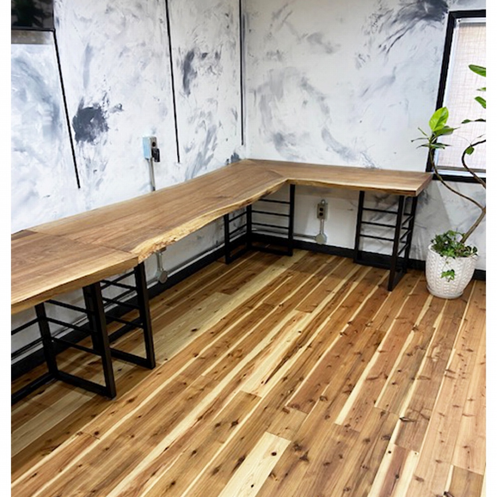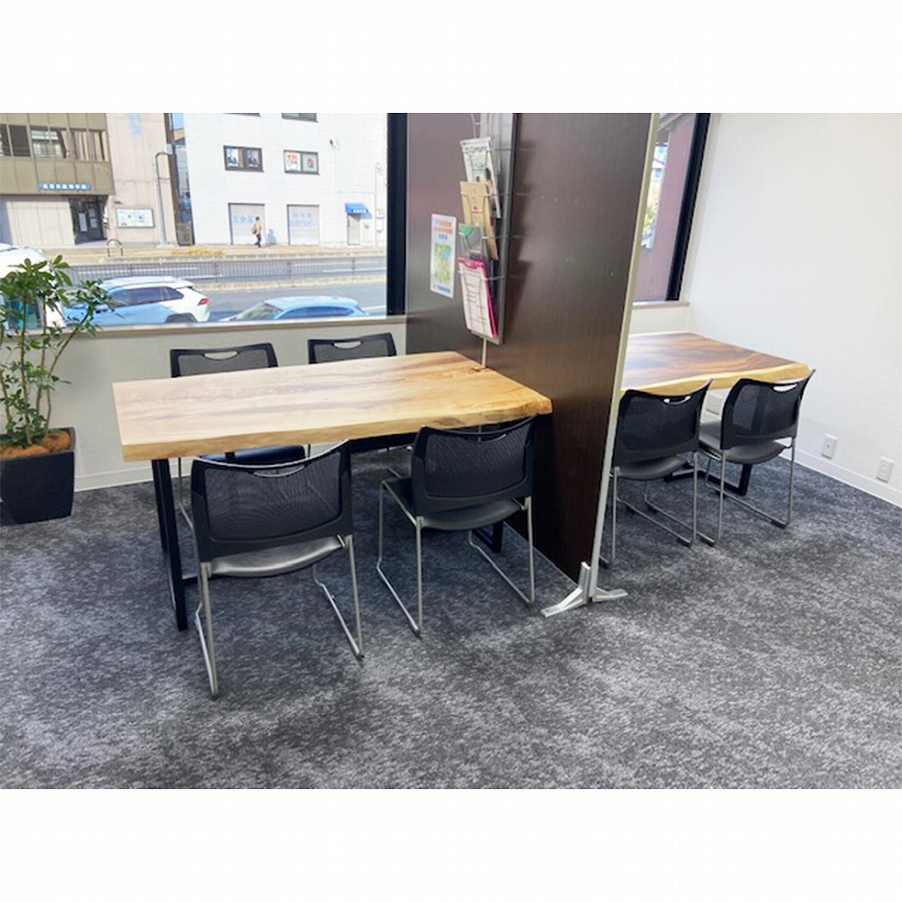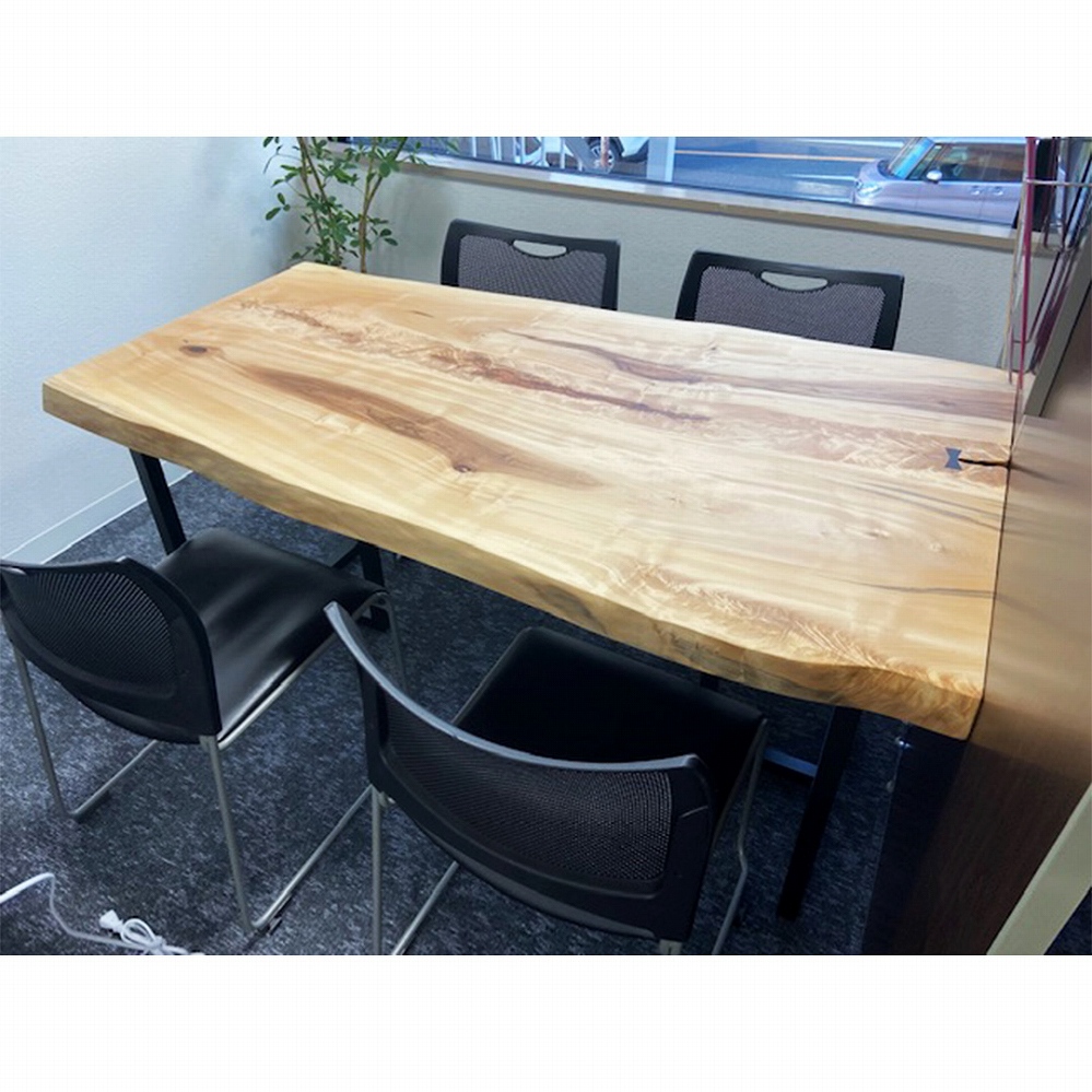 新しいオフィスの雰囲気ににピッタリで一枚板が良く映えていますね!