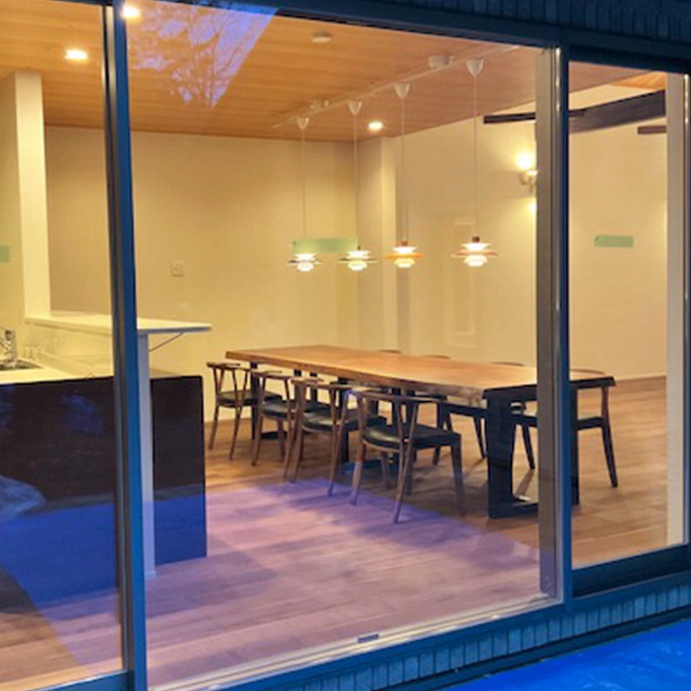 真ん中に通路を確保したいとの事で、離して2つのテーブルとして使用できるように致しました。