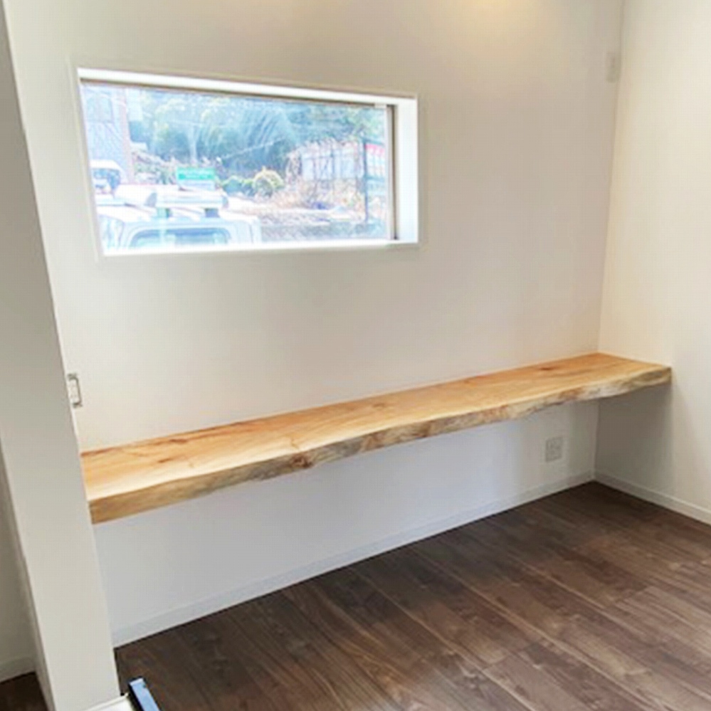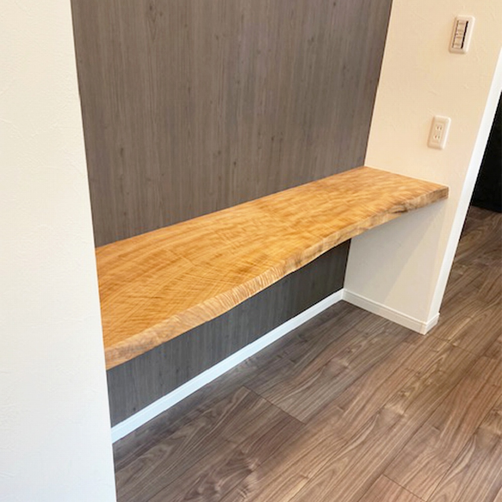 明るいオフィスルームへ栃(トチ)の一枚板をお届けさせていただきました。