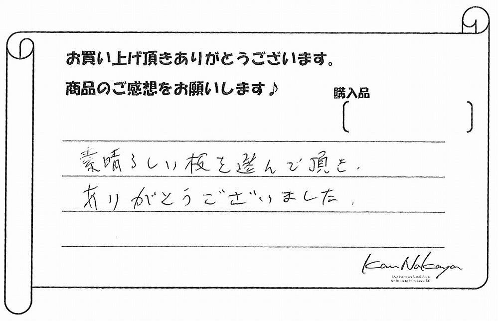 めずらしい一枚板がたくさん有るので大満足ですありがとうございます。』