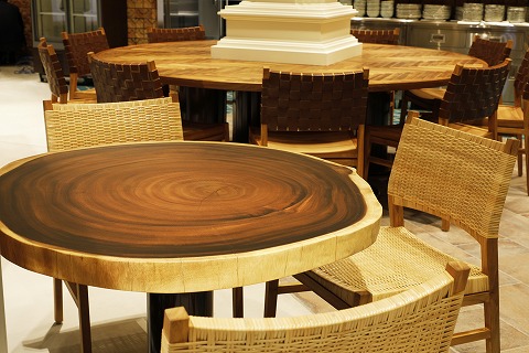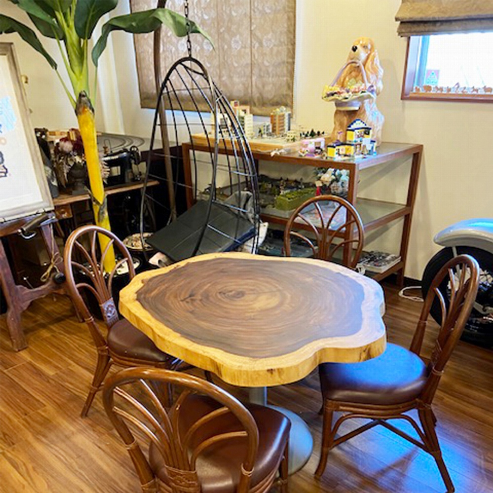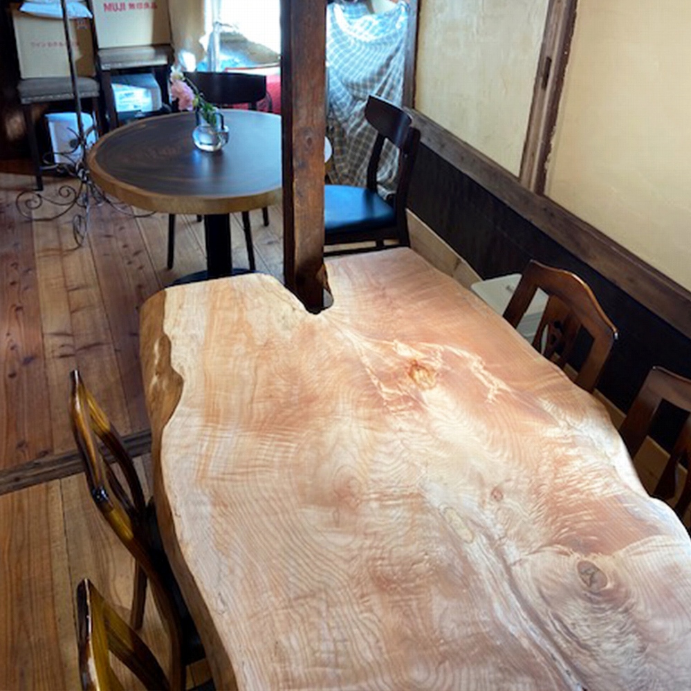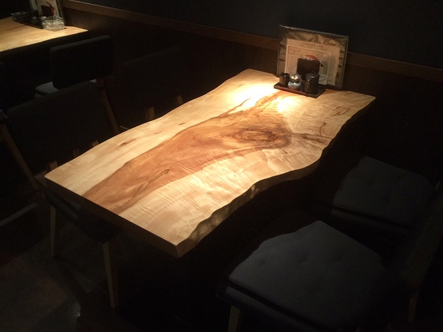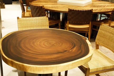他にも可愛いモンキーポッドの円卓に、白さが際立つメープルの一枚板をお選びいただきました♪