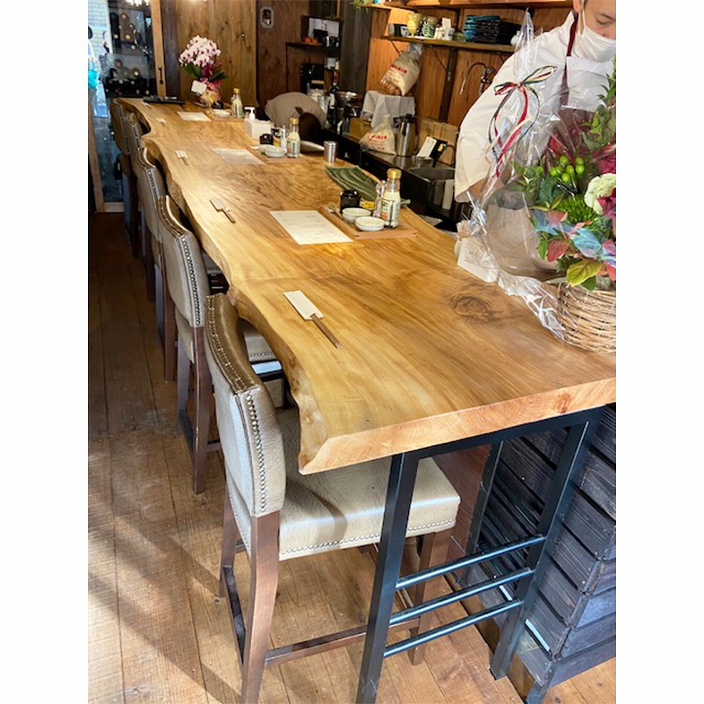 圧巻の栃のカウンターです!この長さとこの杢目は誰しもがびっくり間違い無しですね!
