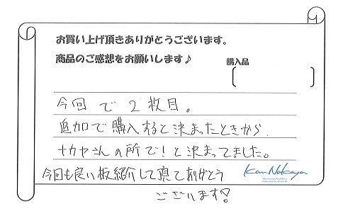 追加で購入すると決まったときからナカヤさんの所で!と決まってました。