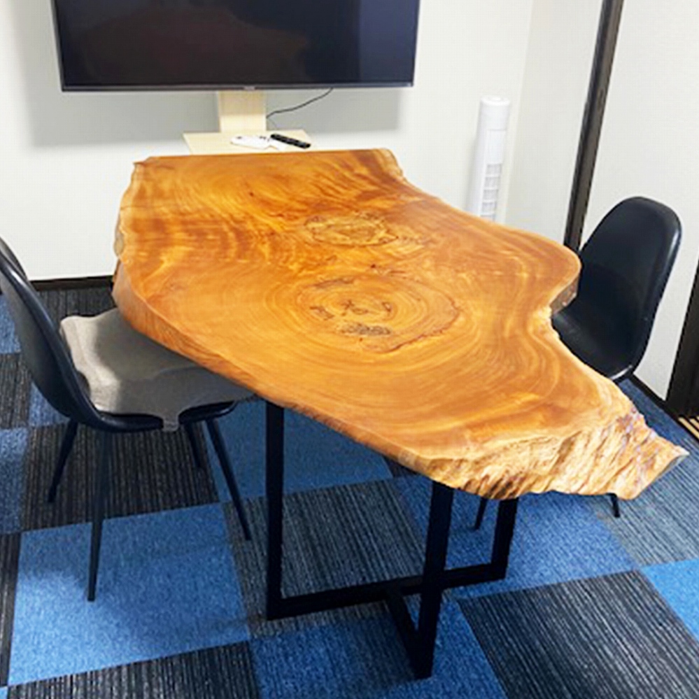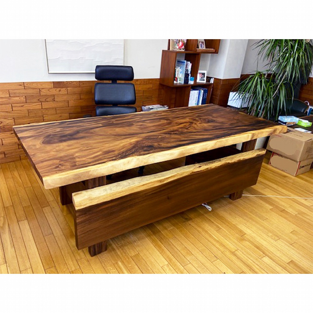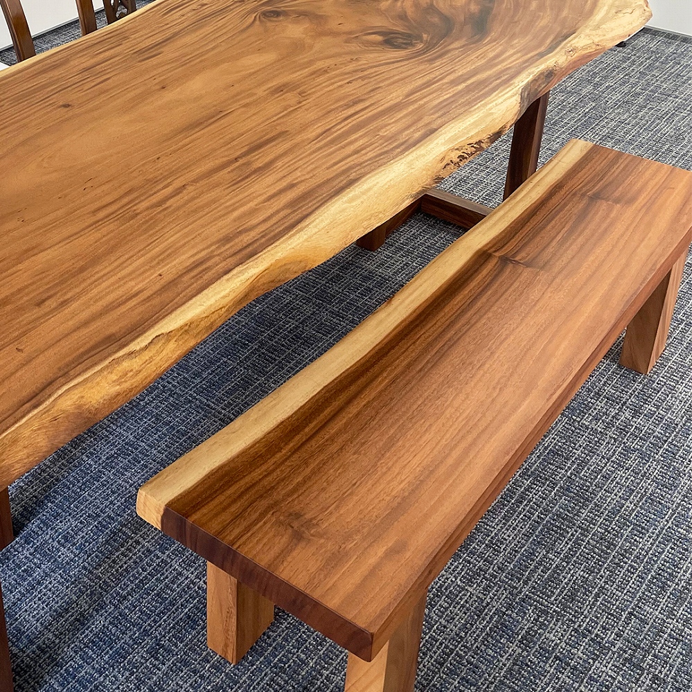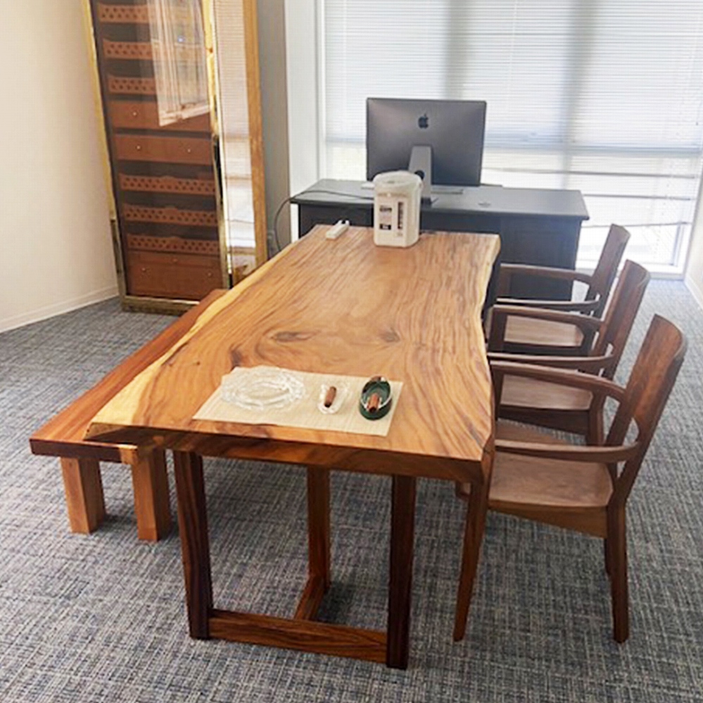 脚もベンチもモンキーポッドで合わされたことで、調和のとれた優しいオフィスになりました。