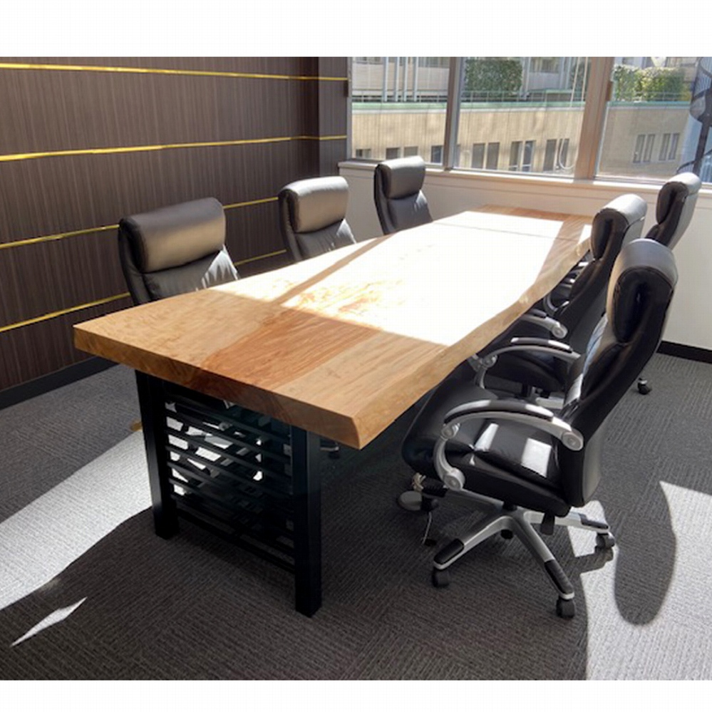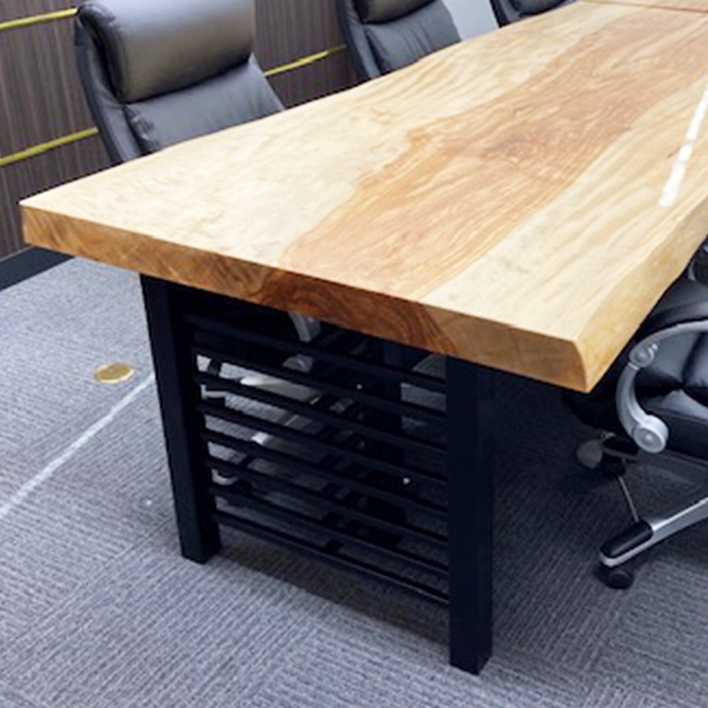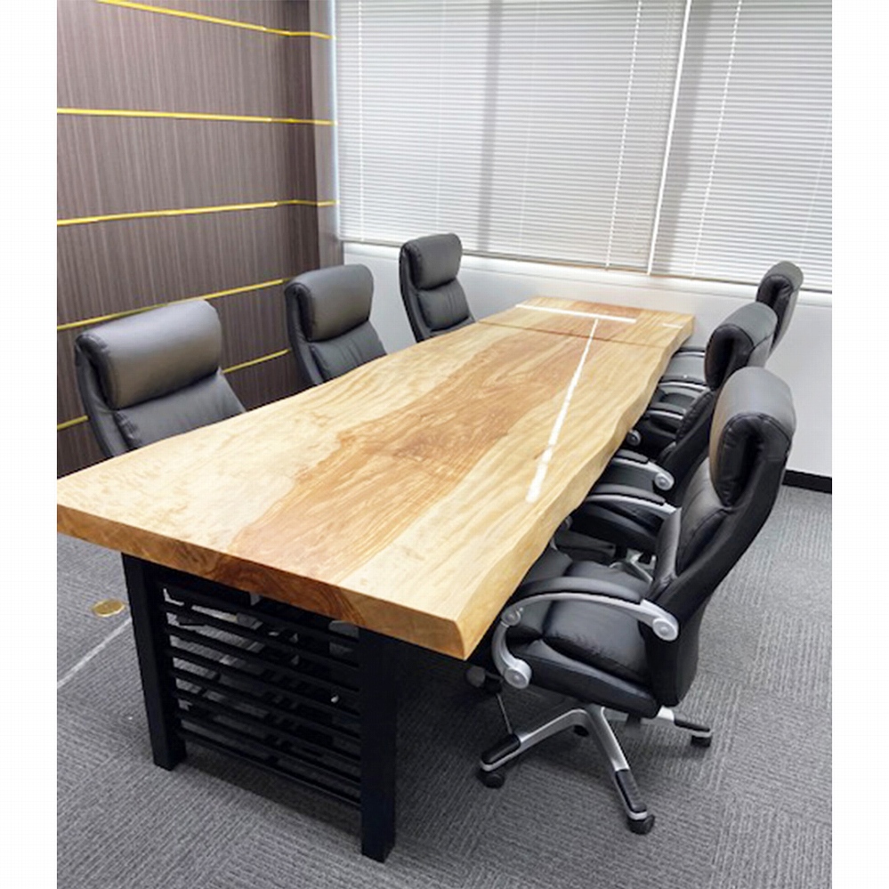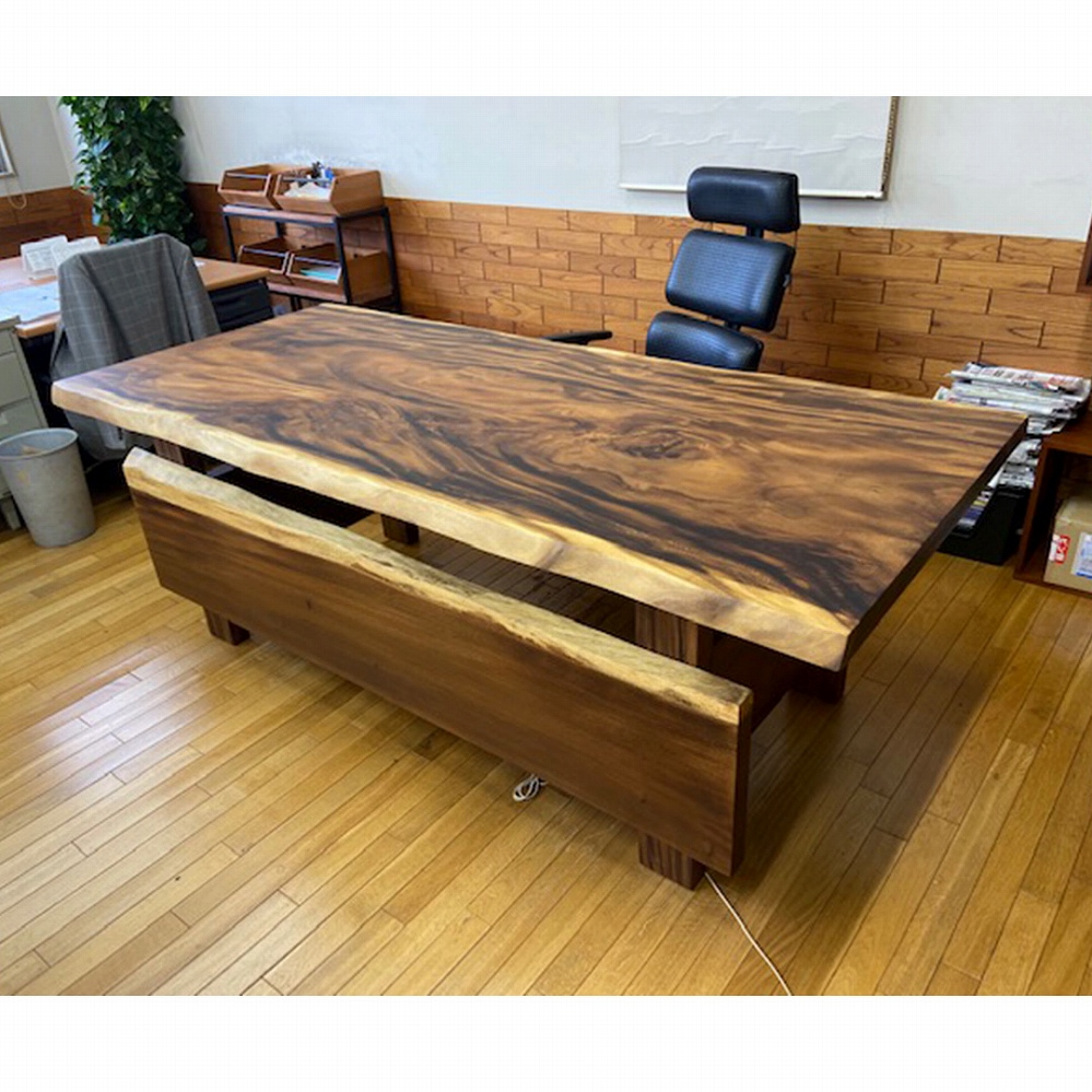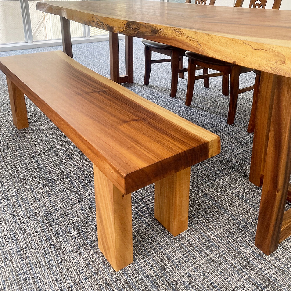 脚もベンチもモンキーポッドで合わされたことで、調和のとれた優しいオフィスになりました。
