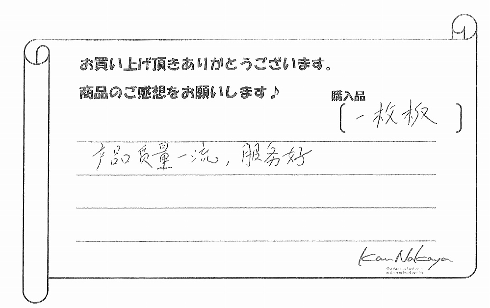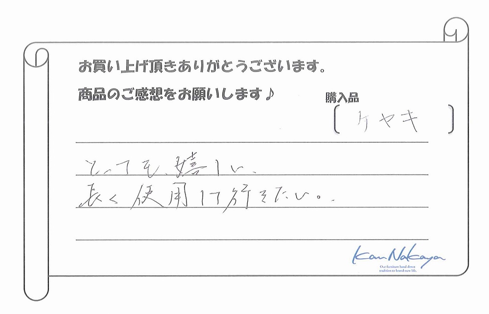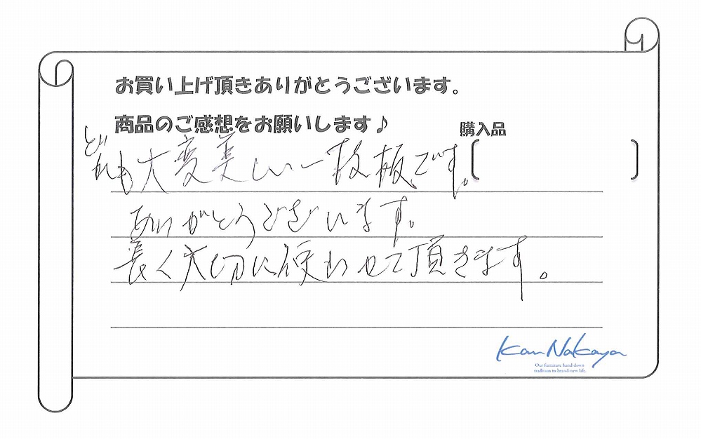 杢目がハッキリとした素晴らしい1枚板に感動しております。