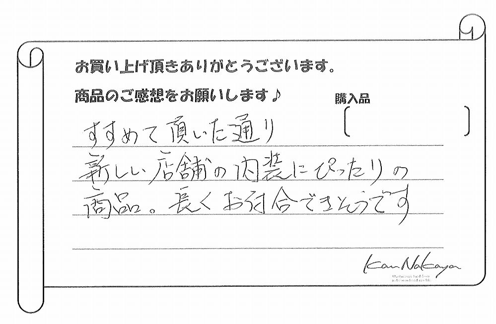 『すすめて頂いた通り新しい店舗内装にぴったりの商品。