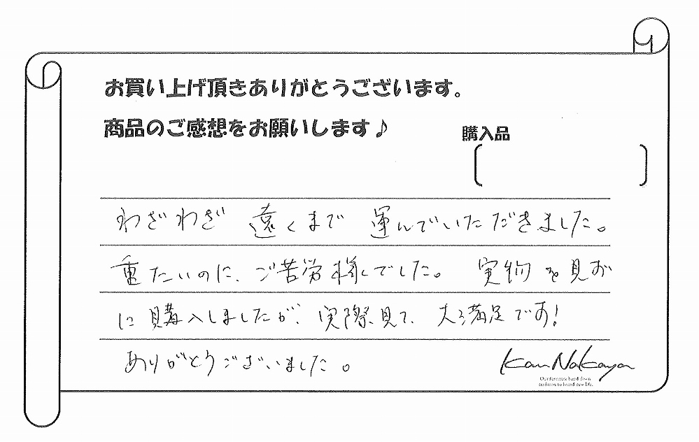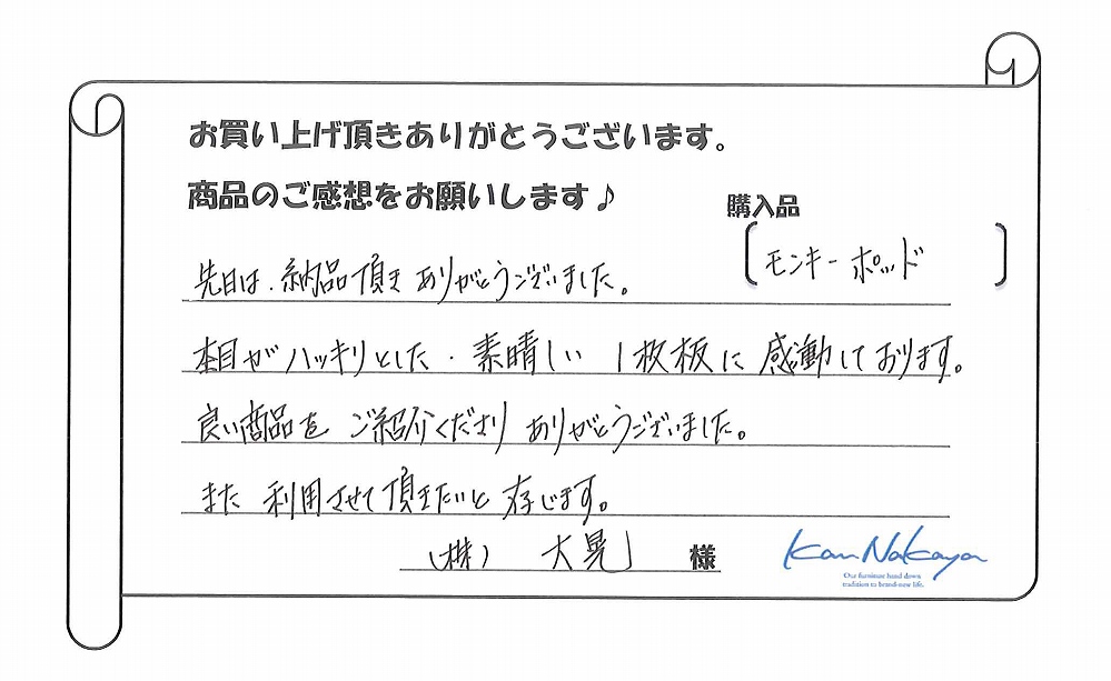 大きな一枚板ですが無事にお届けでき一安心です。ありがとうございました。