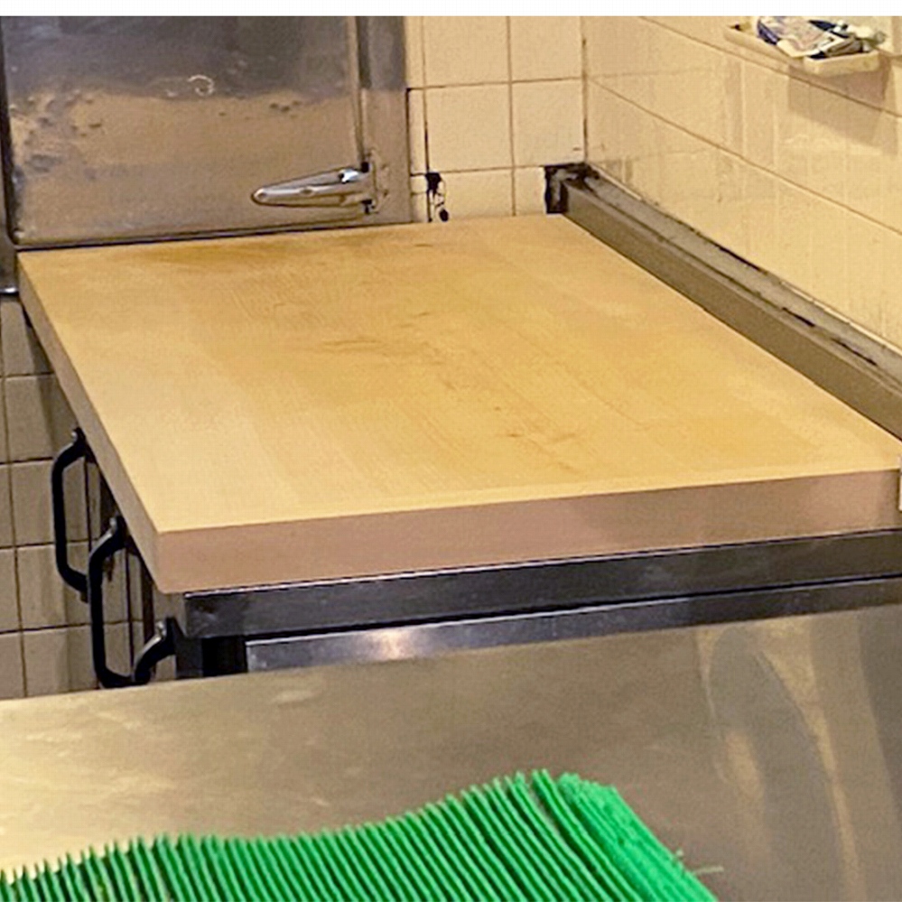 大きすぎて搬入できず少しカットしましたが、杢目が合うので違和感なく並べて置けます。