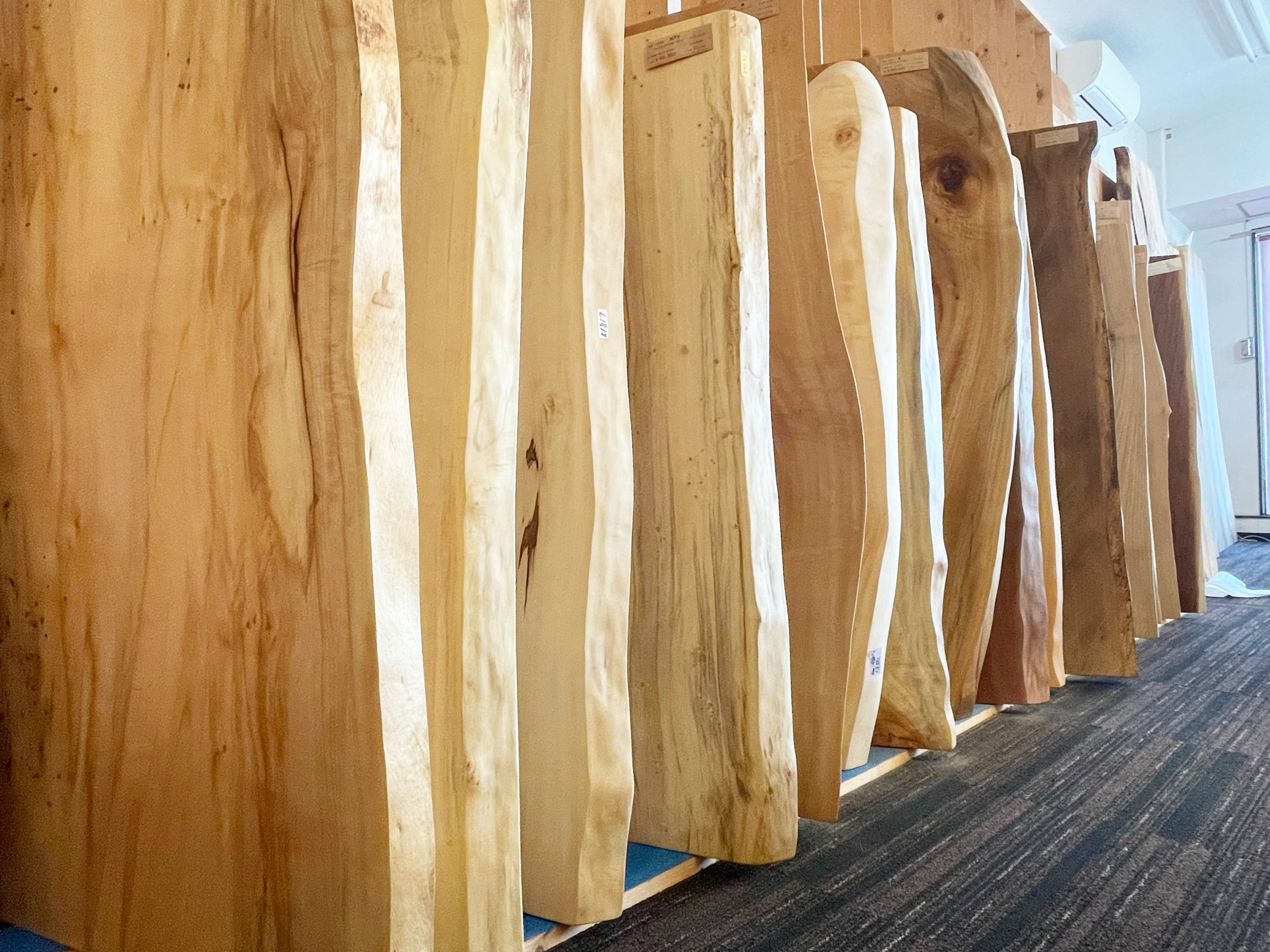 一枚板は木の種類もいろいろ、サイズも形もいろいろ。