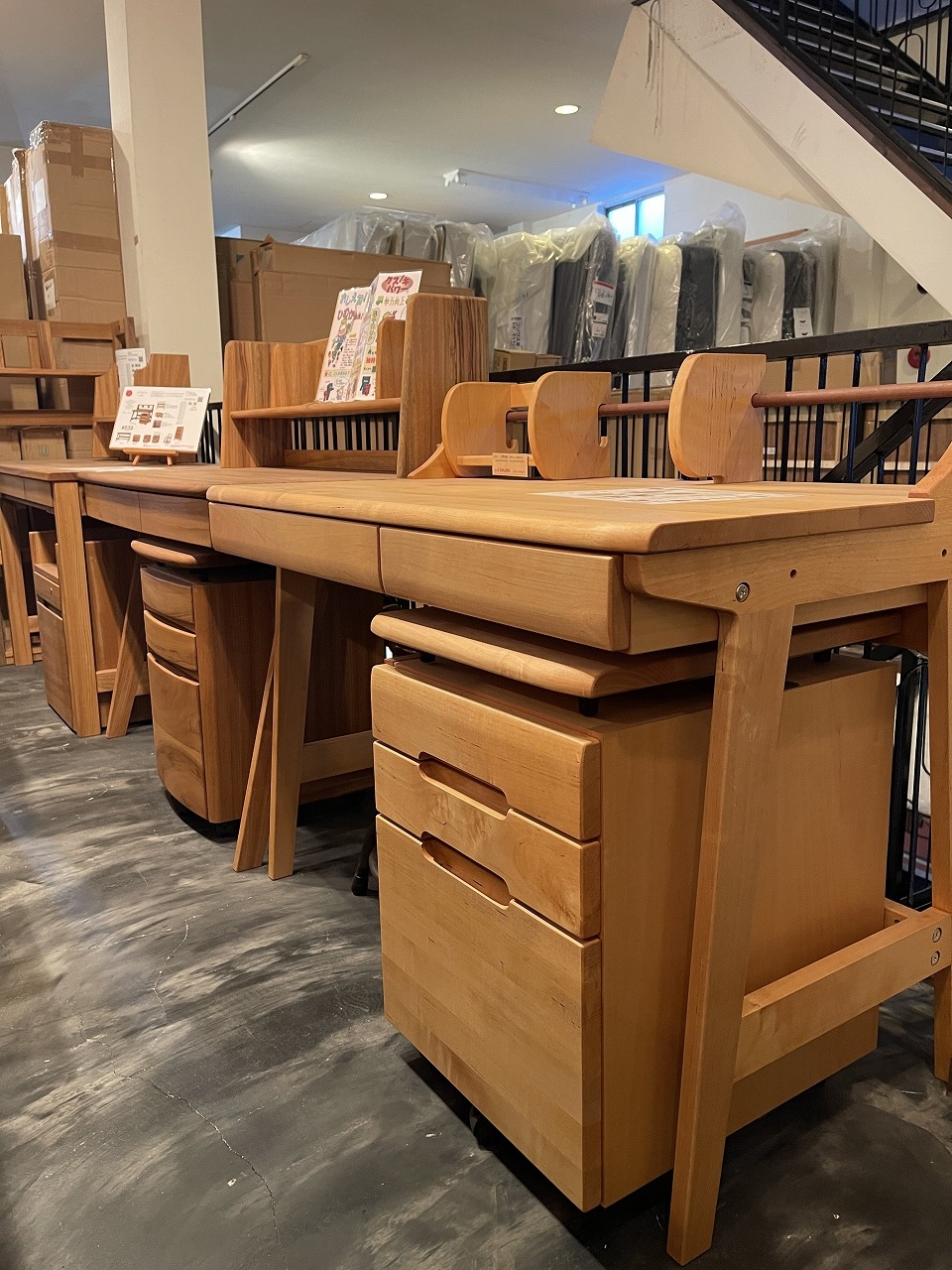 天然木を使った学習デスクもございます。大人になって長く使えるシンプルで体に優しい素材です。