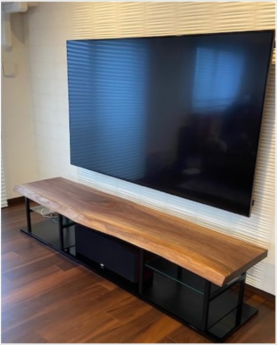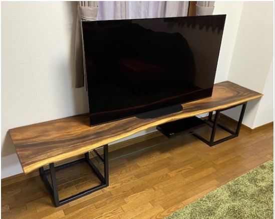 モンキーポットの一枚板天板を使ってテレビボードを作られました。