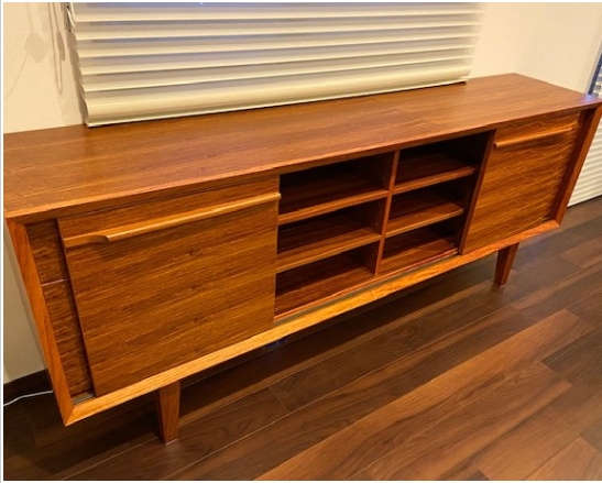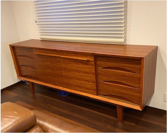 カリン材でサイドボードをお作りさせて頂きました。収納たっぷりで、見た目がとっても高級感のあるデザイン。予想以上の綺麗なサイドボードになりましたね!どこにもない世界に一つだけのサイドボードです。