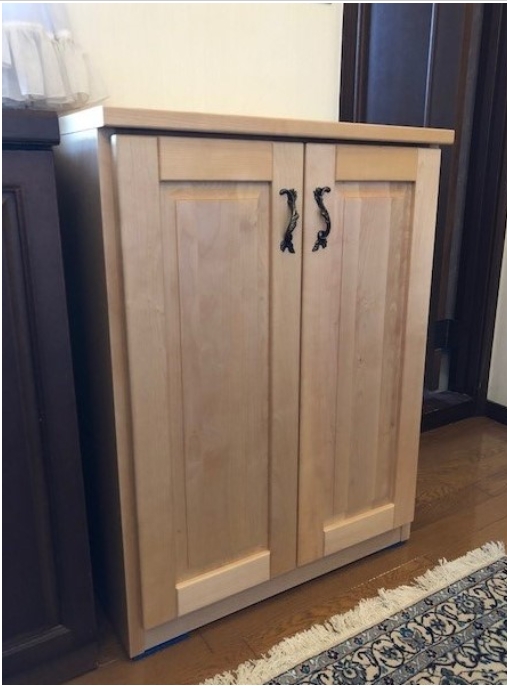 靴の収納を増やす為、玄関先に下駄箱をお造りさせて頂きました。木はナチュラルなイメージのカバ桜のオイル仕上げです。取っ手もKan Nakaya(姉妹サイトorgan)のオリジナルアイアン取っ手です。