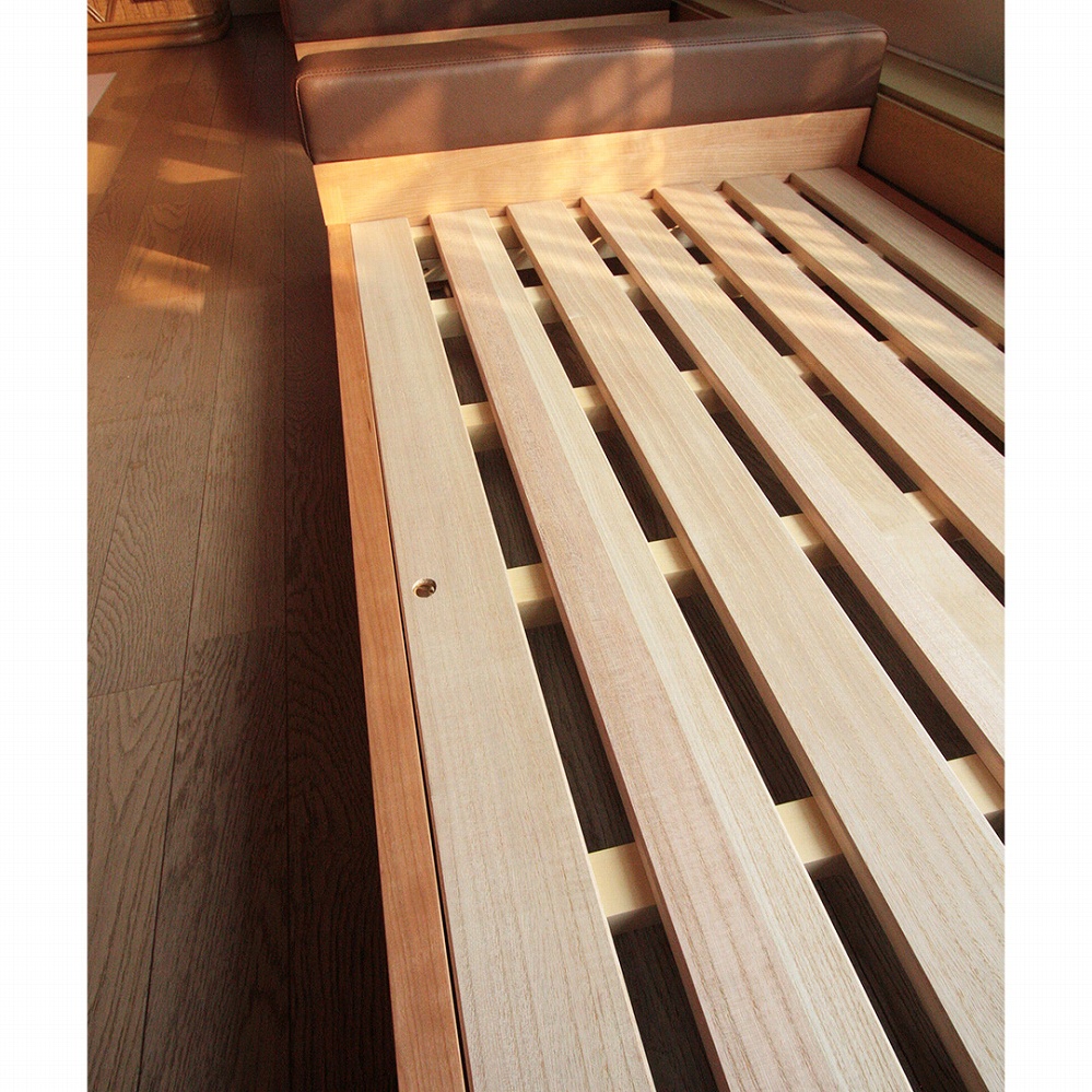 マットを置く部分には、人間のベッドでも同じ桐のスノコを使用。通気性もバッチリです。
