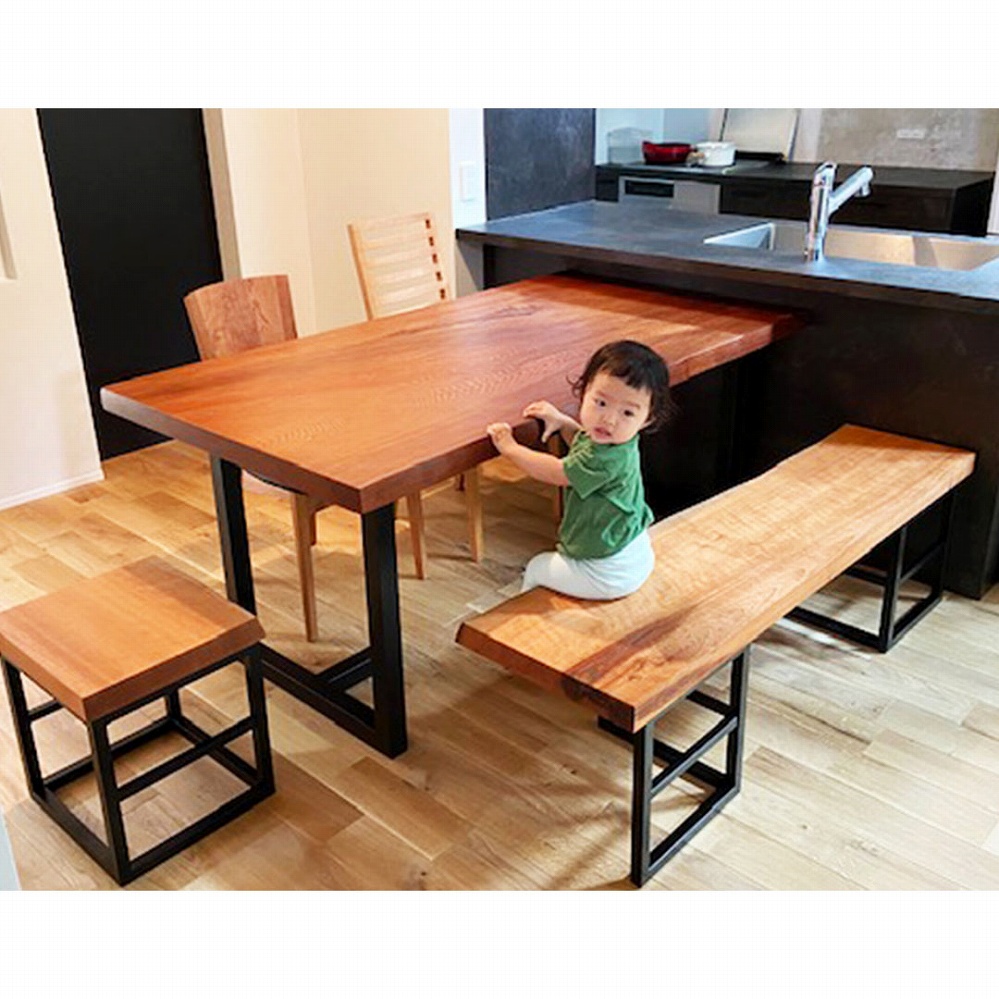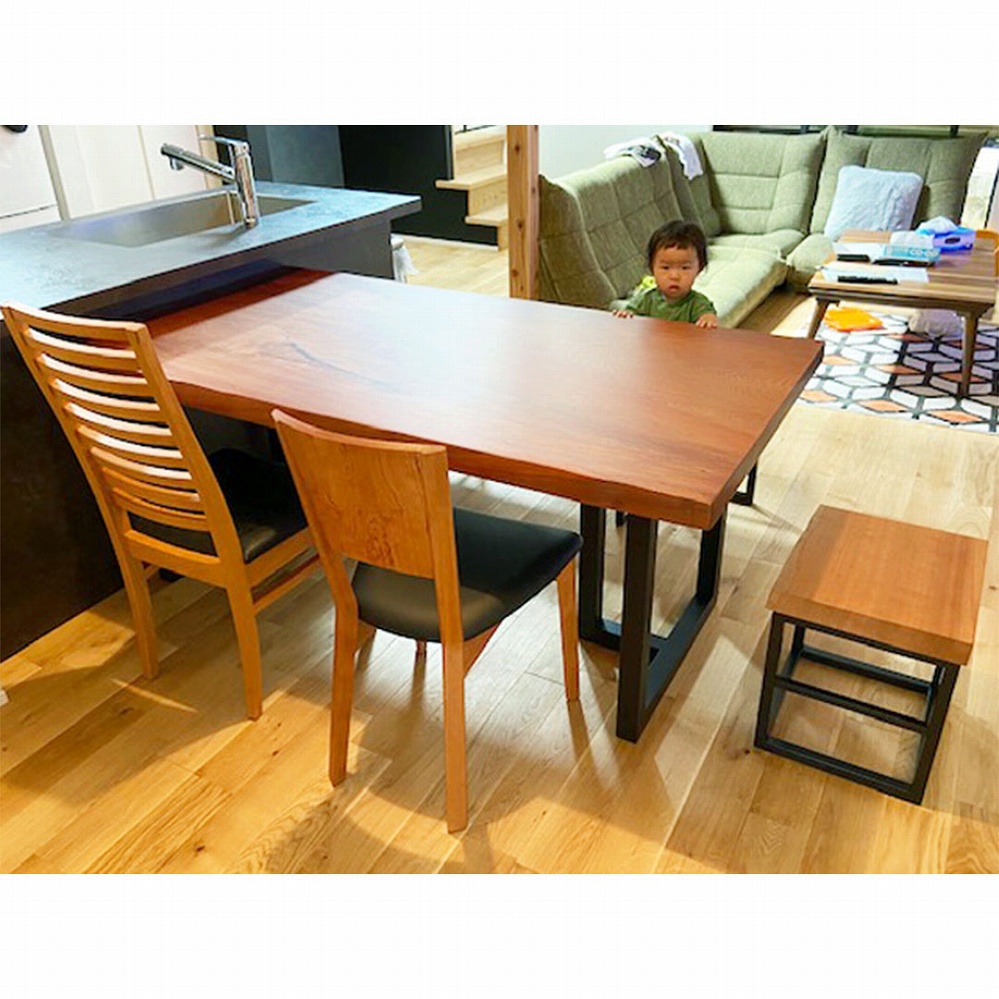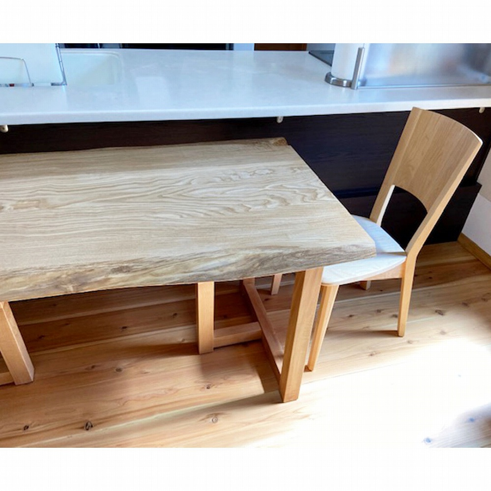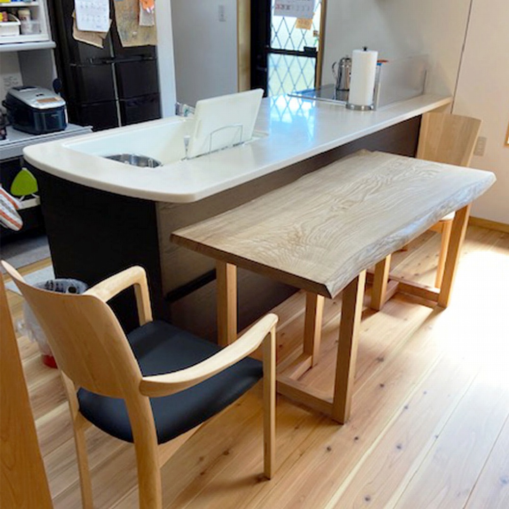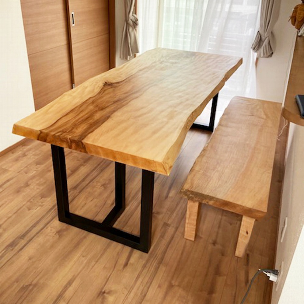 ベンチも天板と同じ栃の一枚板で統一感があり、素敵なテーブルに仕上がりました。