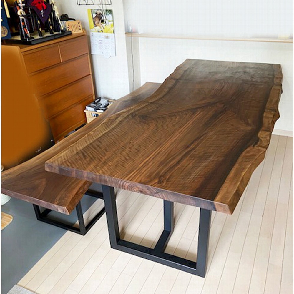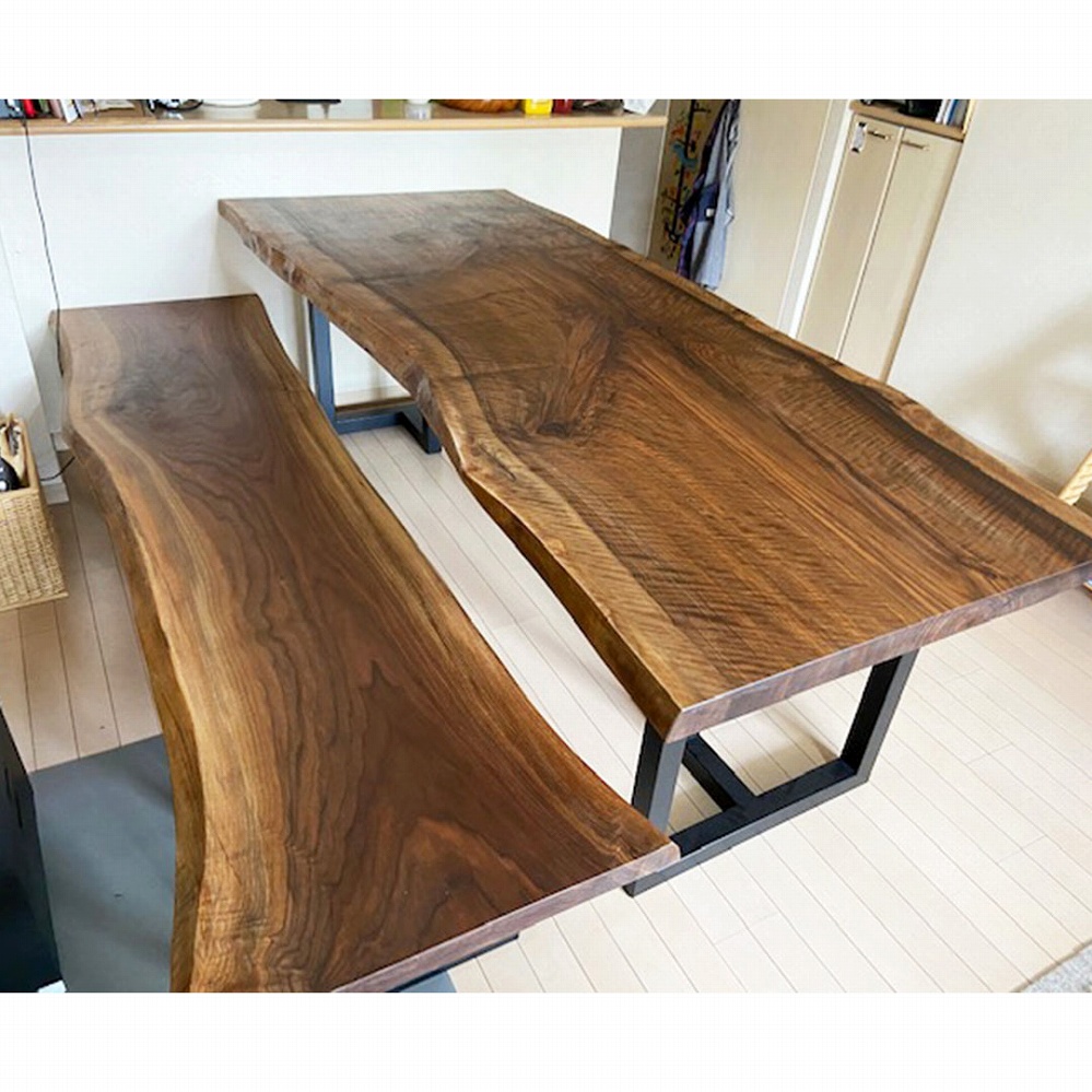 また、同じくウォールナット材の一枚板ベンチもご一緒です。