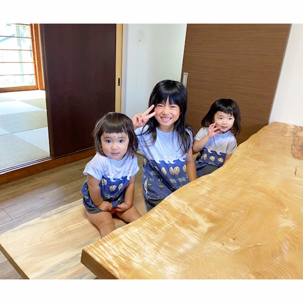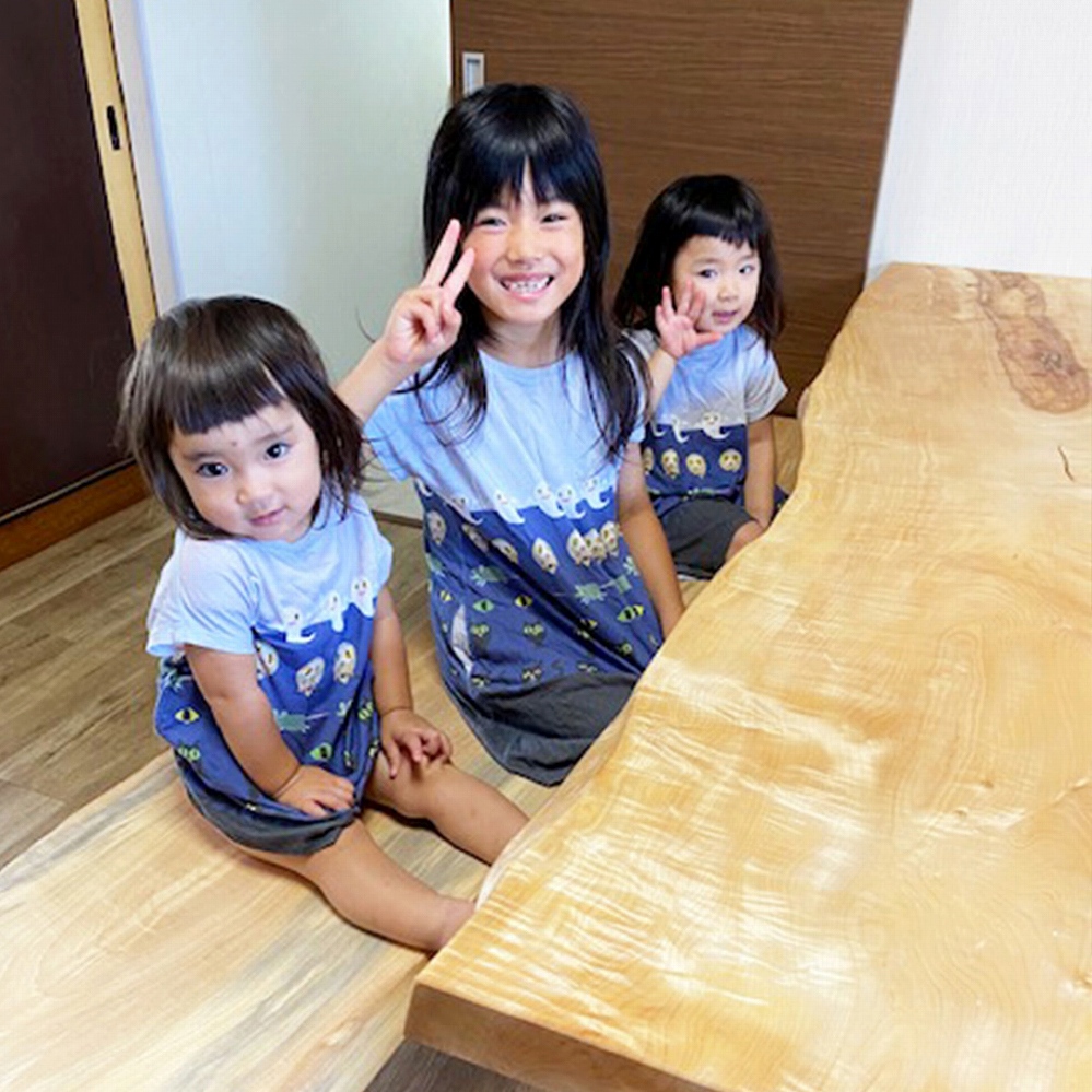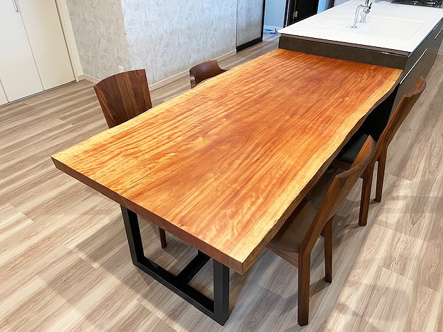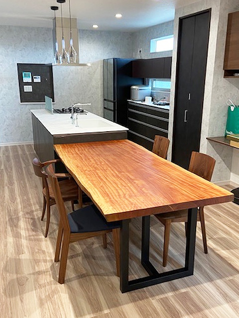 ご新居の明るいダイニングに栃(トチ)の一枚板をお届けしました。
