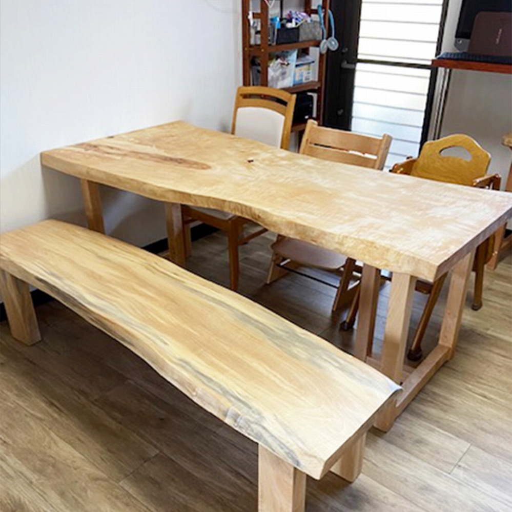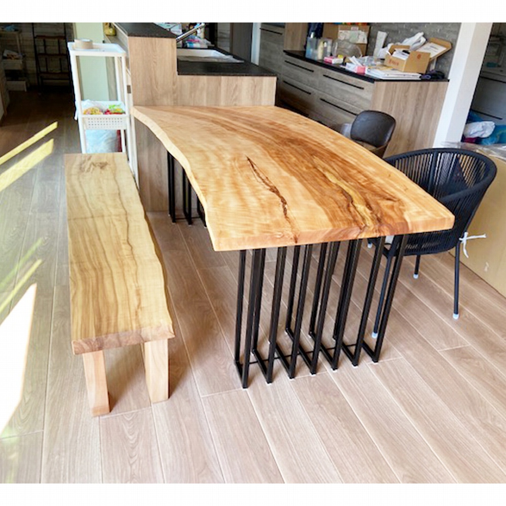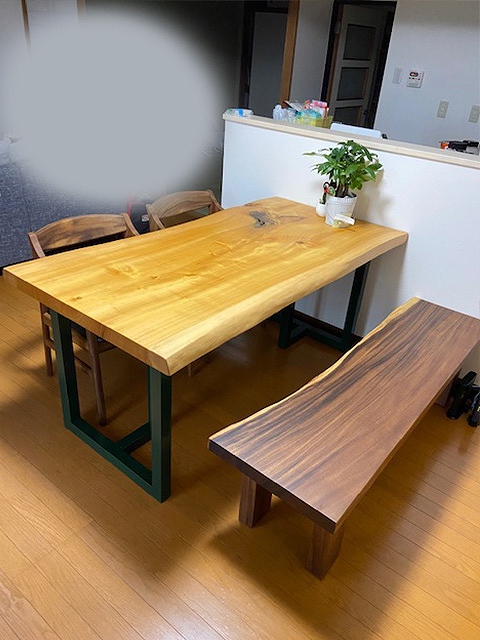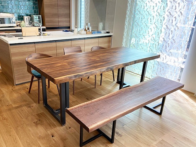 ベンチはもともとは大きかった一枚板をカットして、テーブルに合う長さにしました。