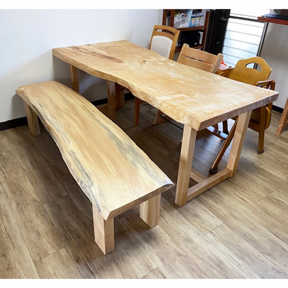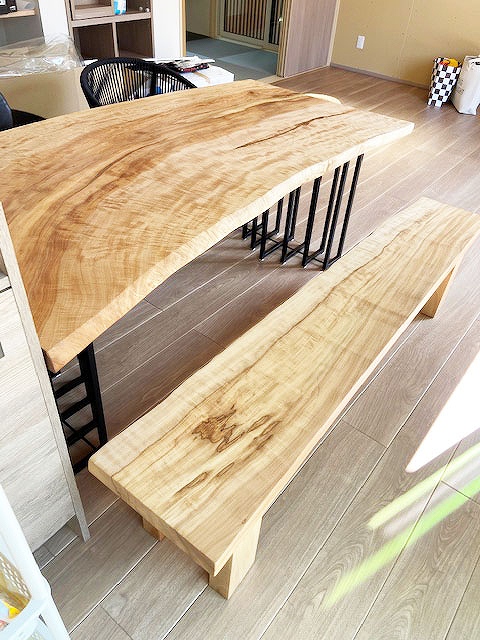 ベンチも栃(トチ)の一枚板をご用意しました。