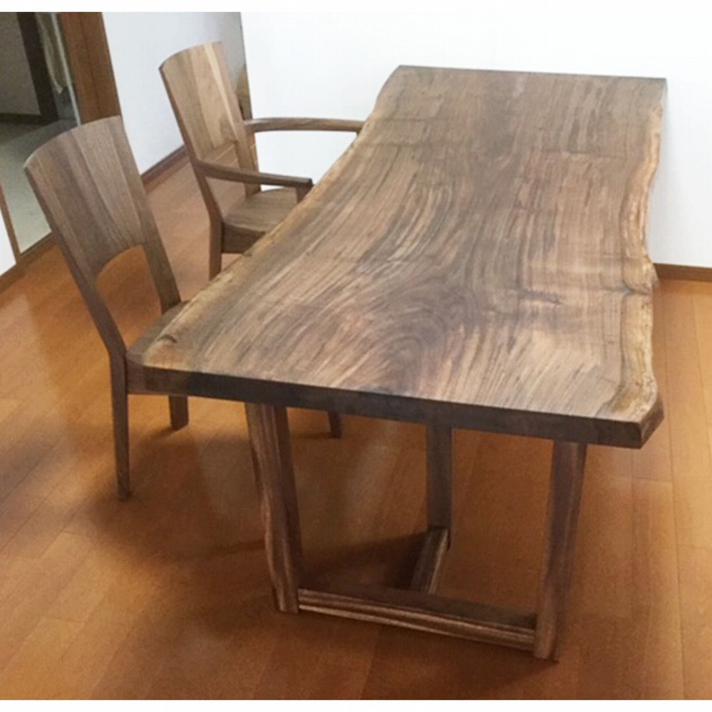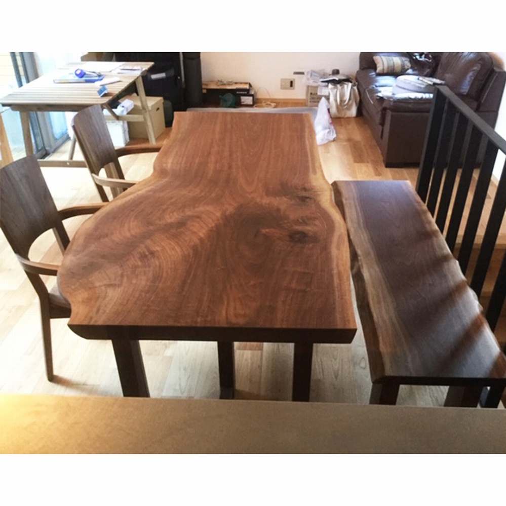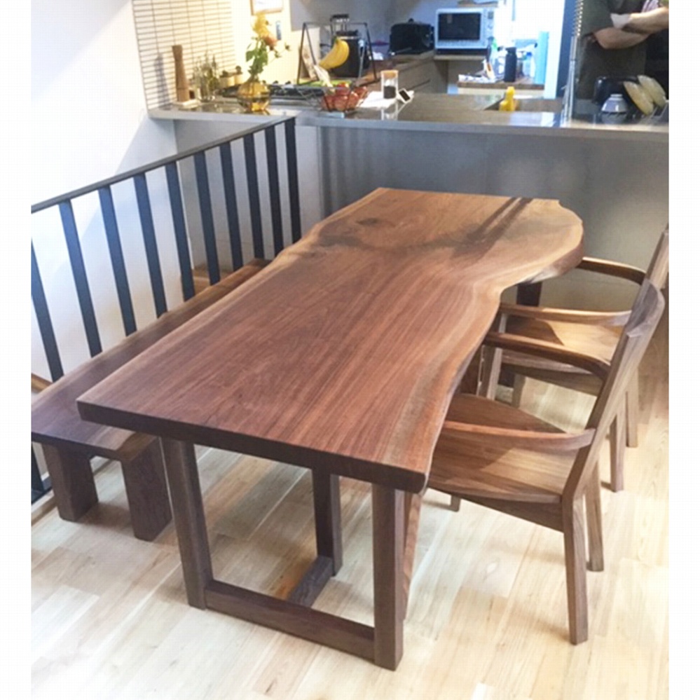 また、それに合わせてウォールナット材の一枚板ベンチやダイニングチェアもお届けさせていただきました。