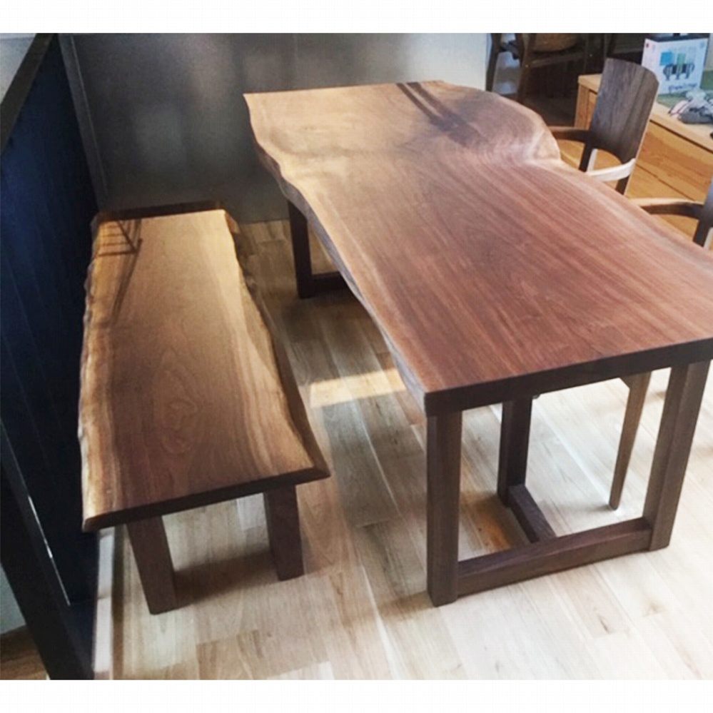 また、同じくベンチもウォールナット材の一枚板です。
