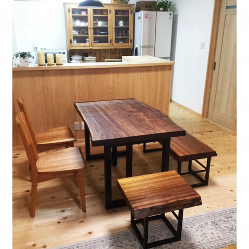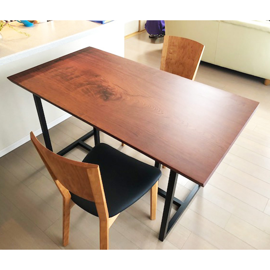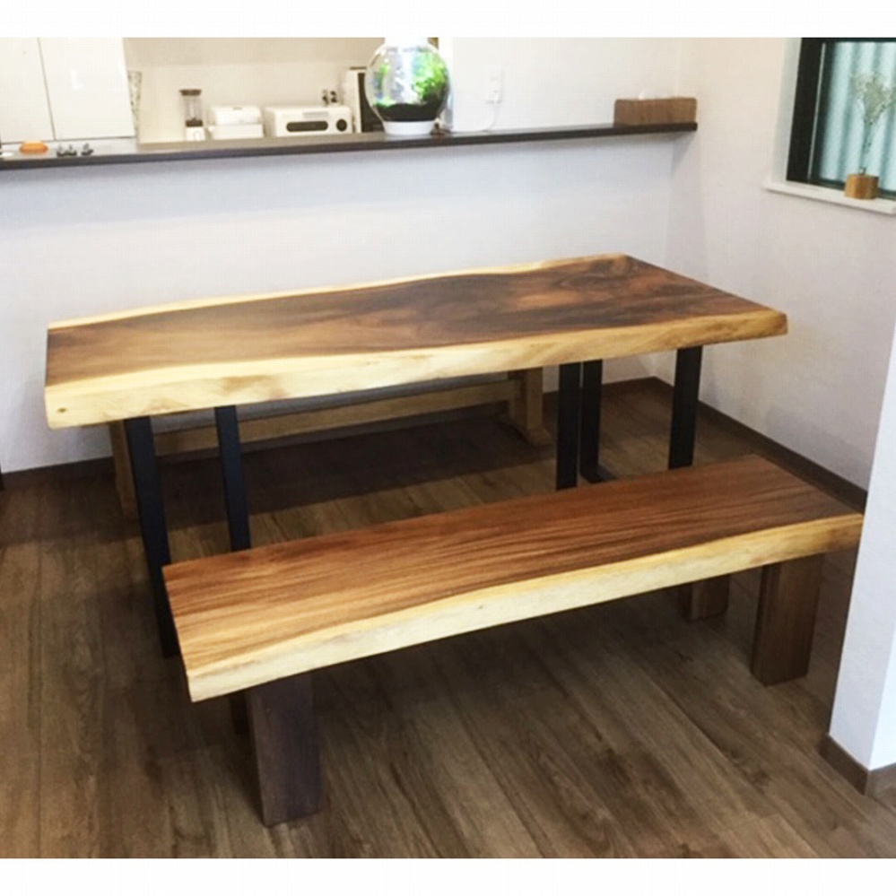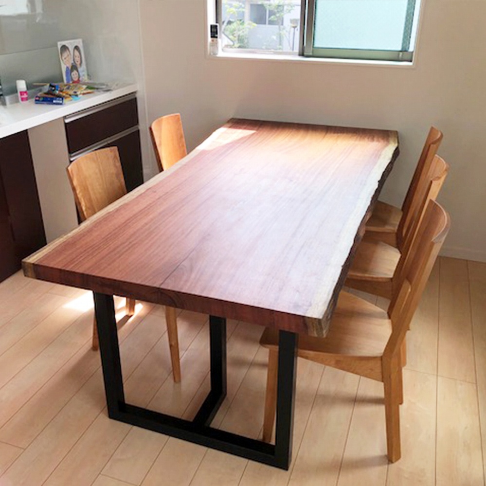 モンキーポッドで天板・脚・ベンチと揃っているのでとても統一感があり素敵なダイニングテーブルになりました。
