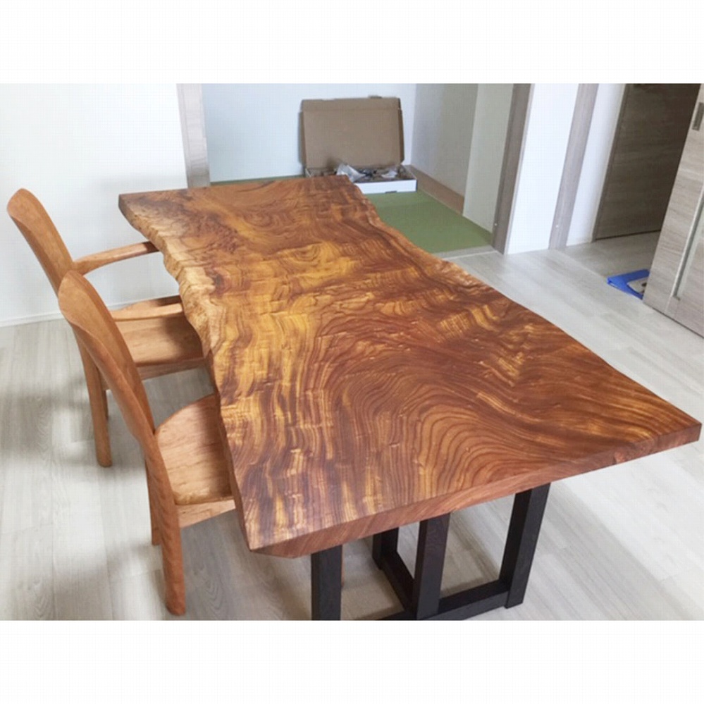 明るいフローリングに映える楠(クス)の一枚板です。