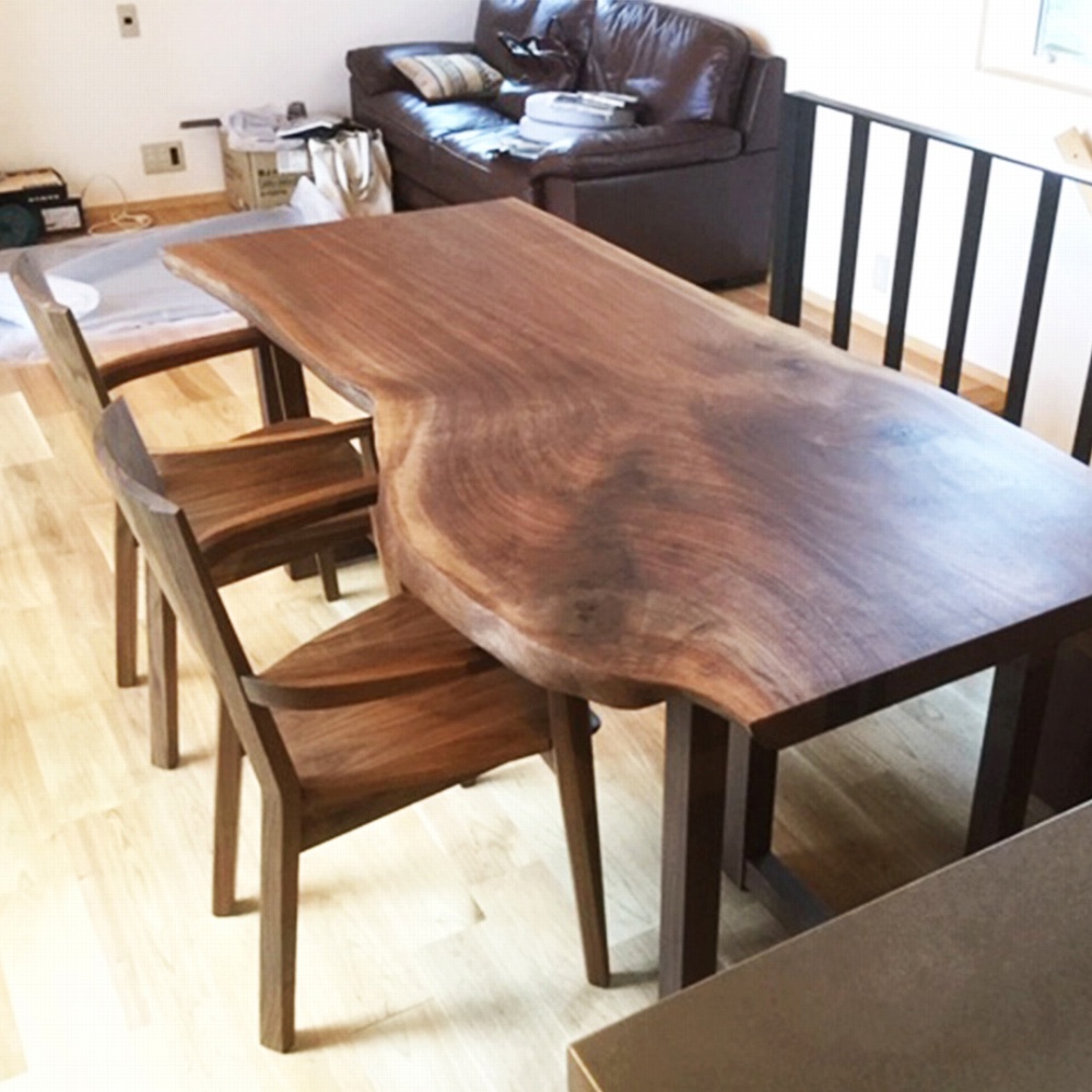自然なフォルムが格好良いウォールナット材の一枚板をお届けさせていただきました。