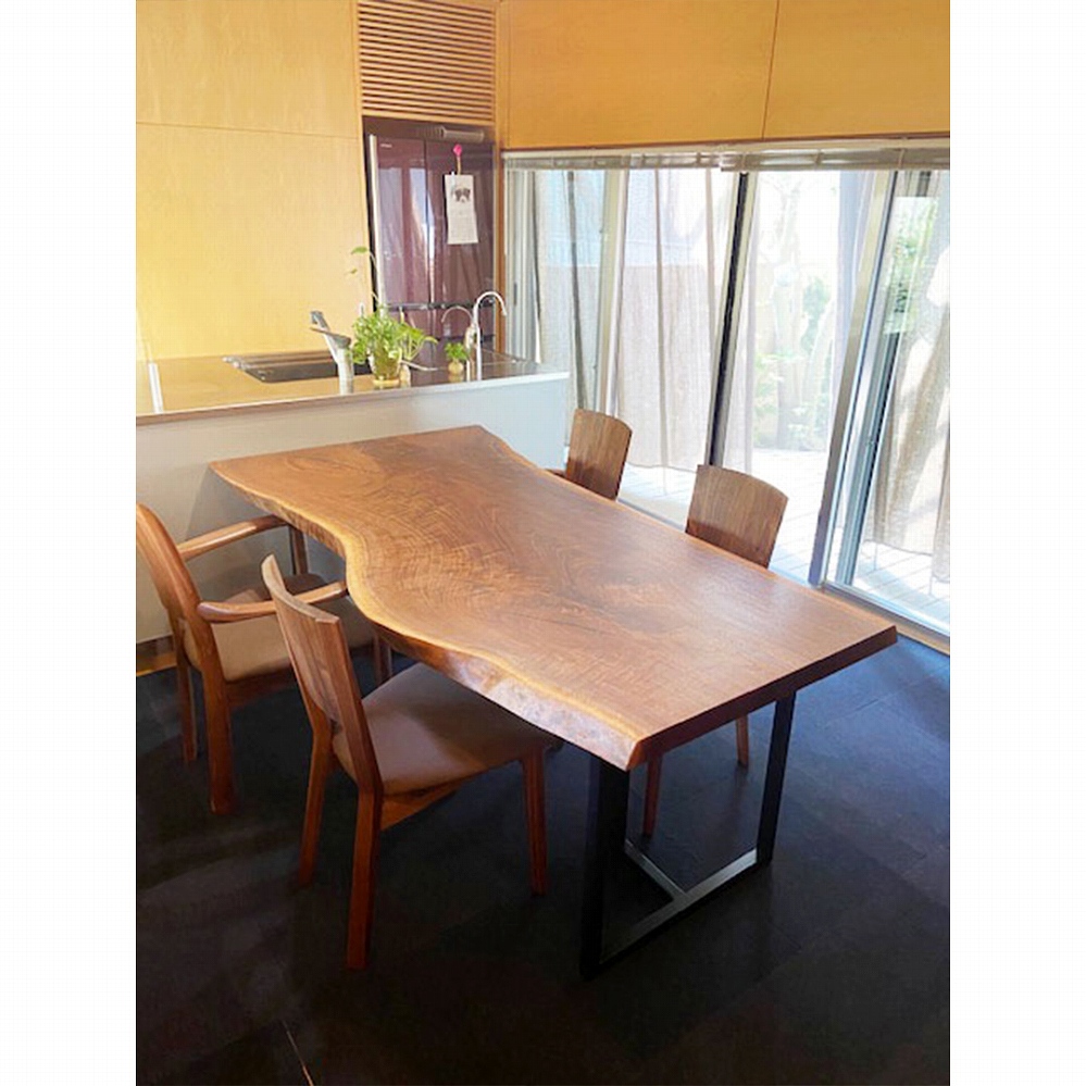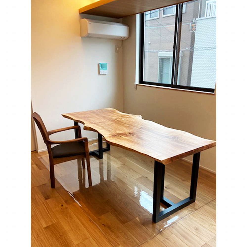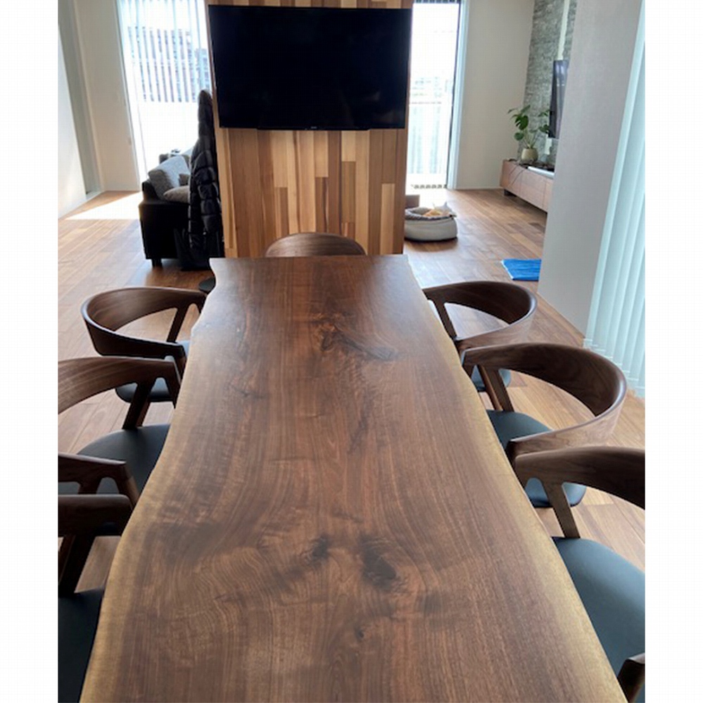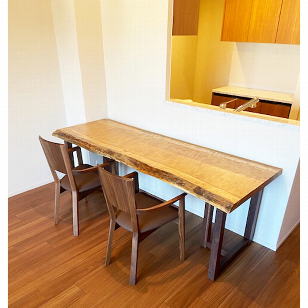 一枚板の脚はやがて同じ色合いに馴染んでくるウォールナット材に。