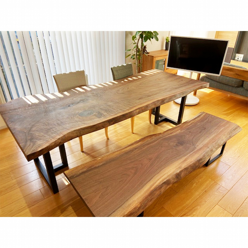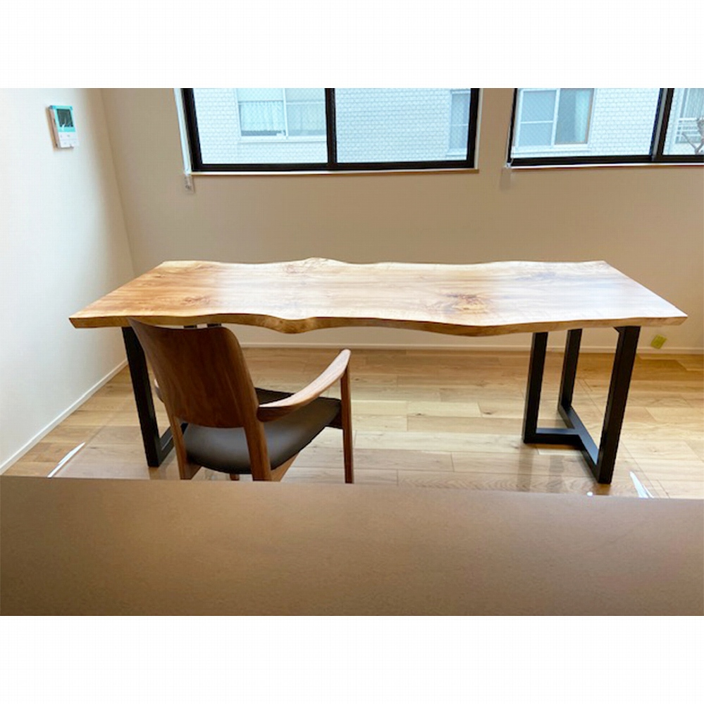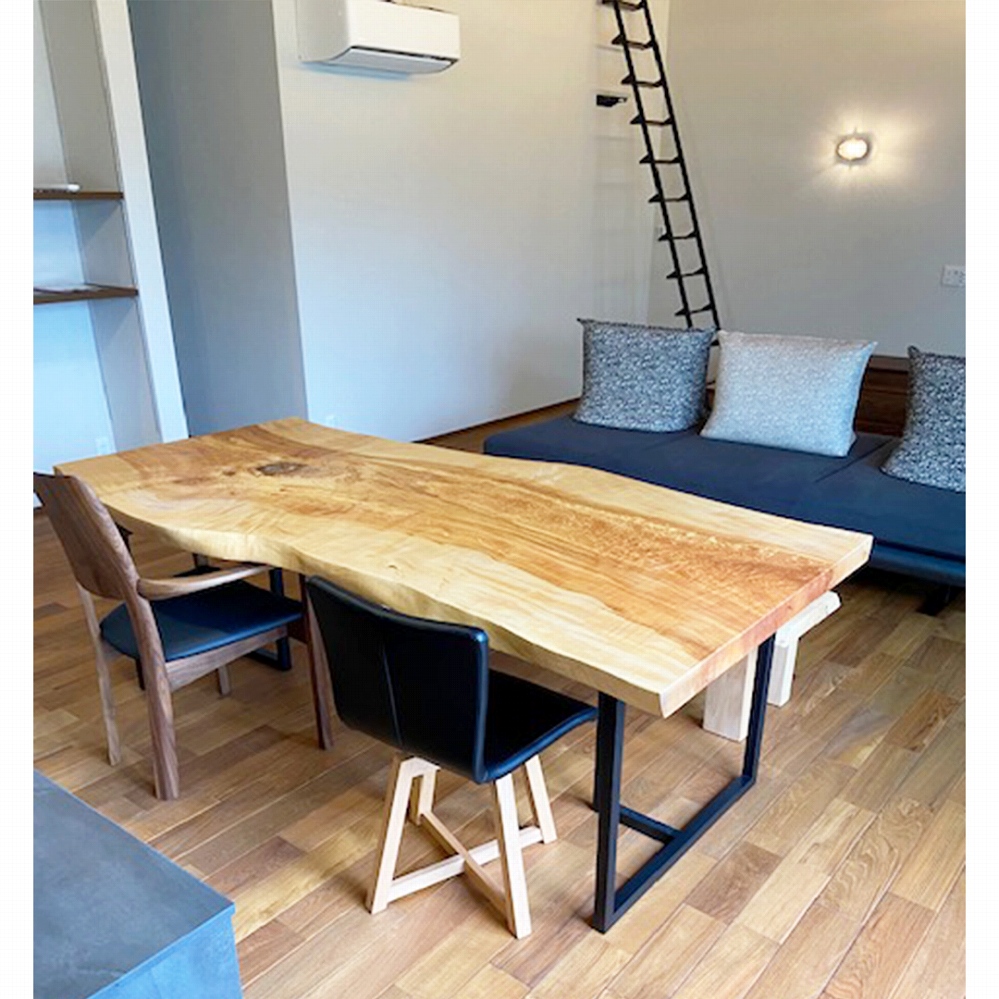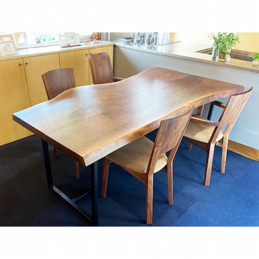 一枚板の脚はやがて同じ色合いに馴染んでくるウォールナット材に。