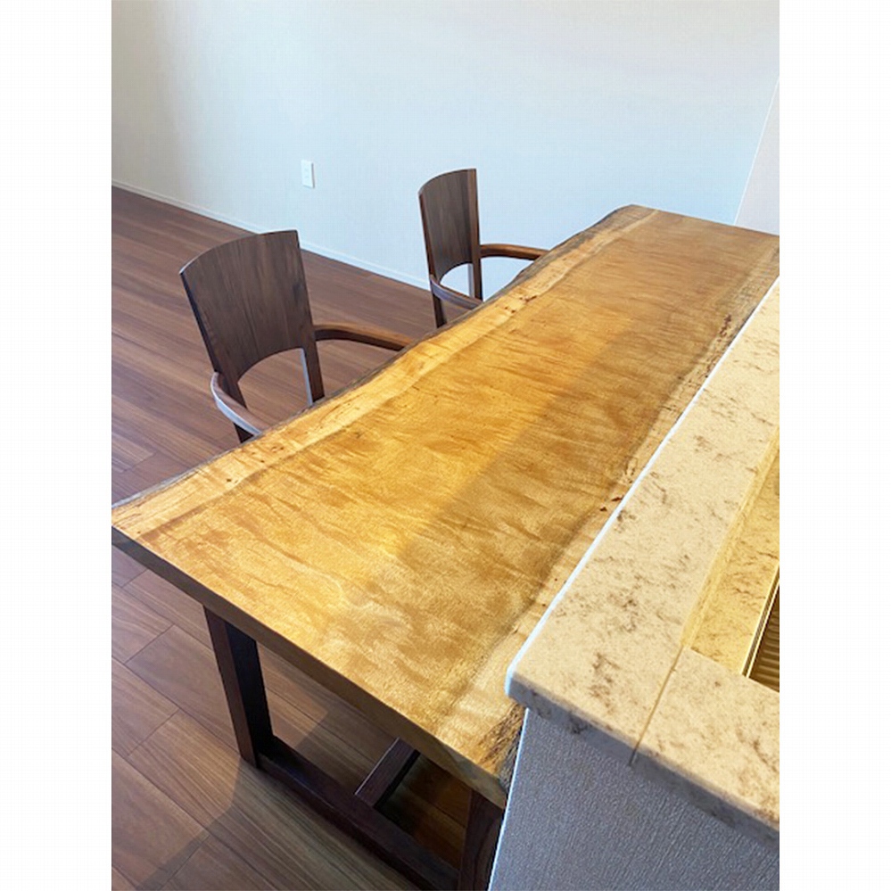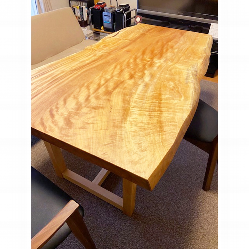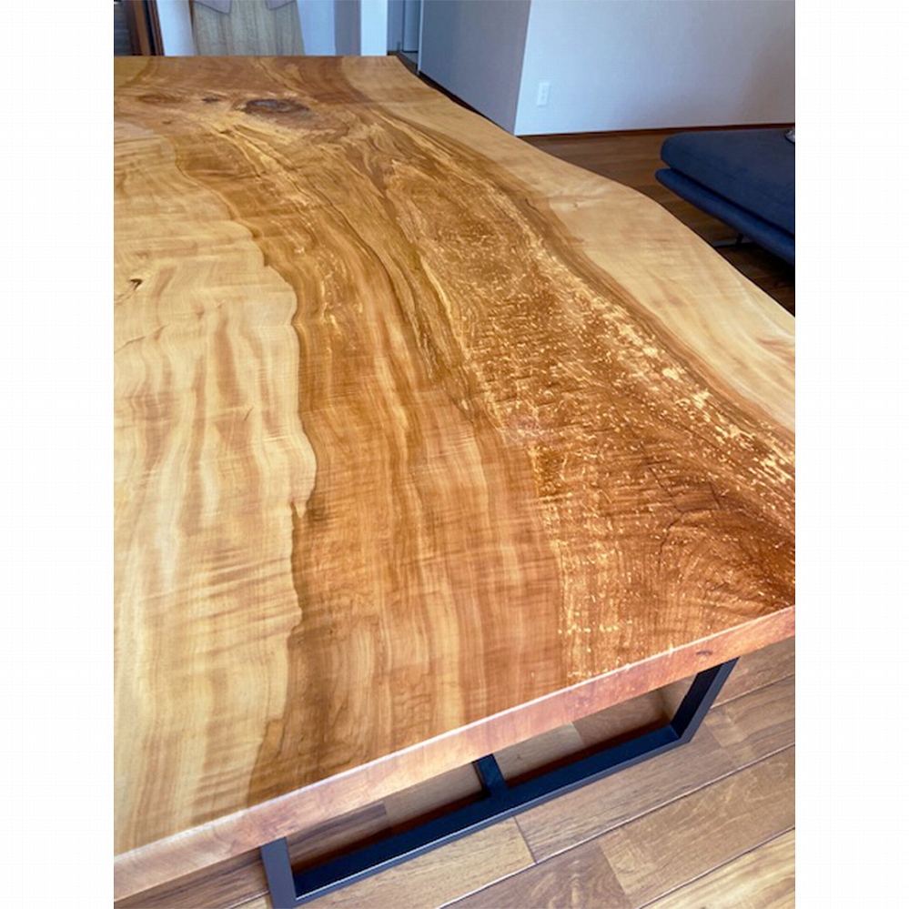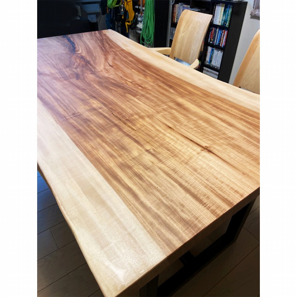 大変美しい木目が華やかな印象の栃(トチ)の一枚板をお届けしました。