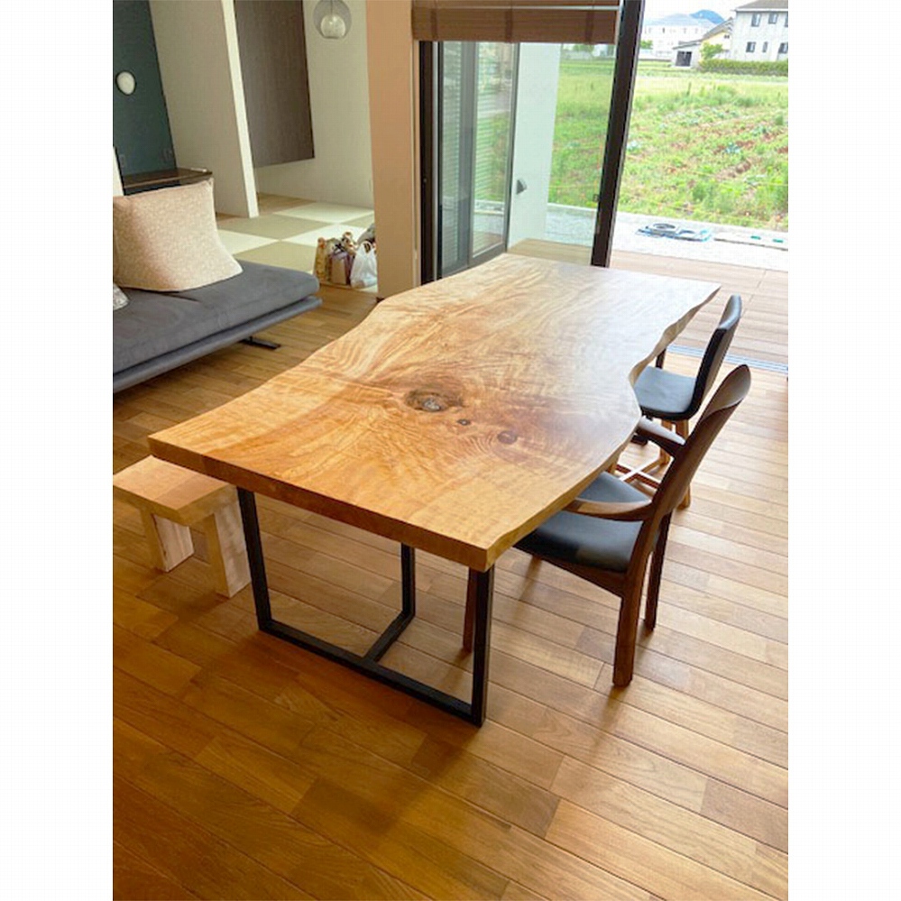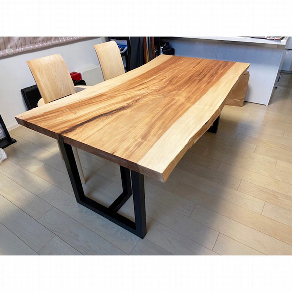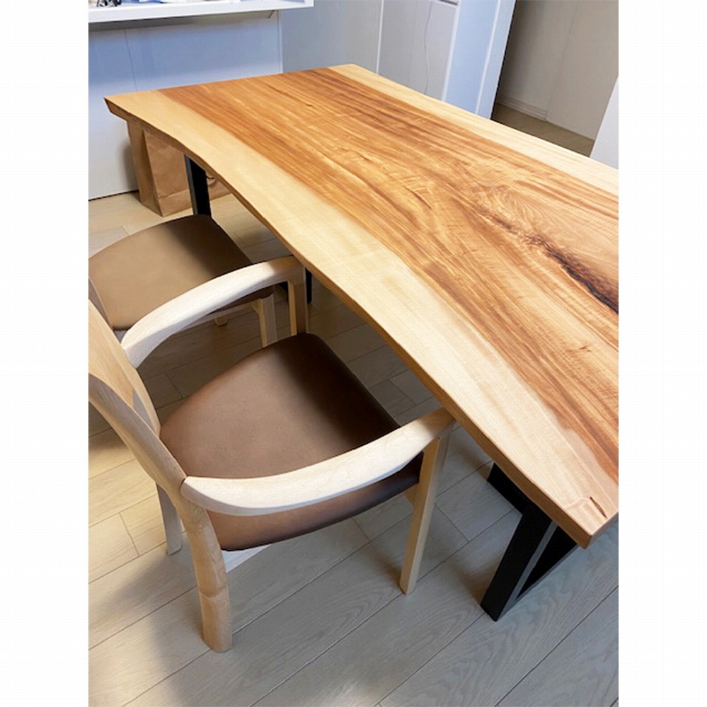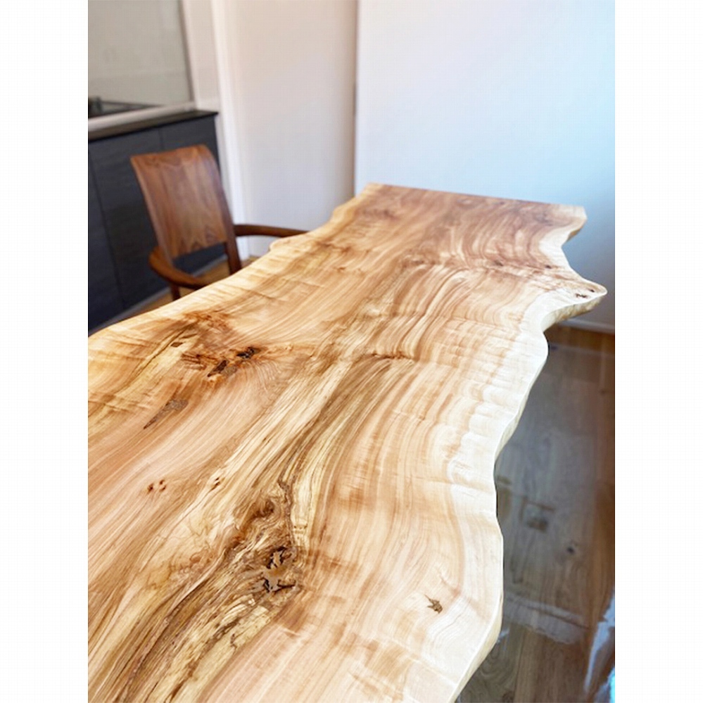 大変美しい木目が華やかな印象の栃(トチ)の一枚板をお届けしました。