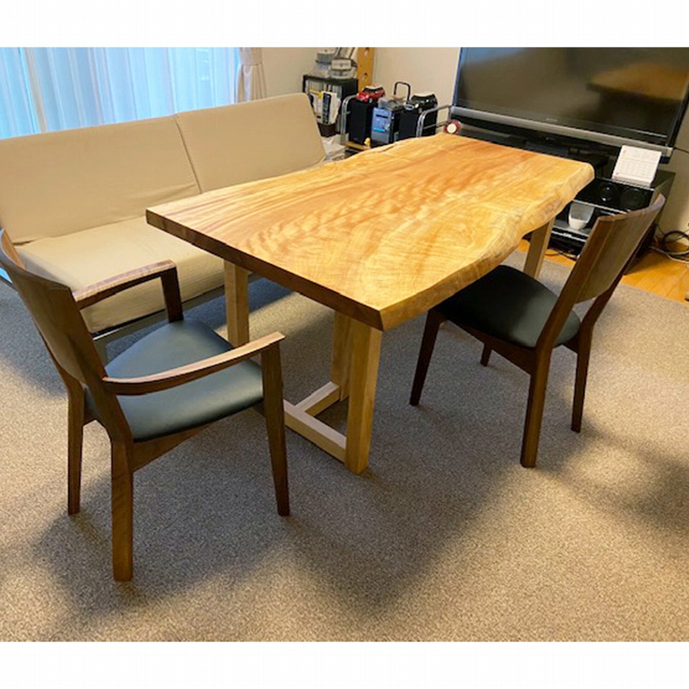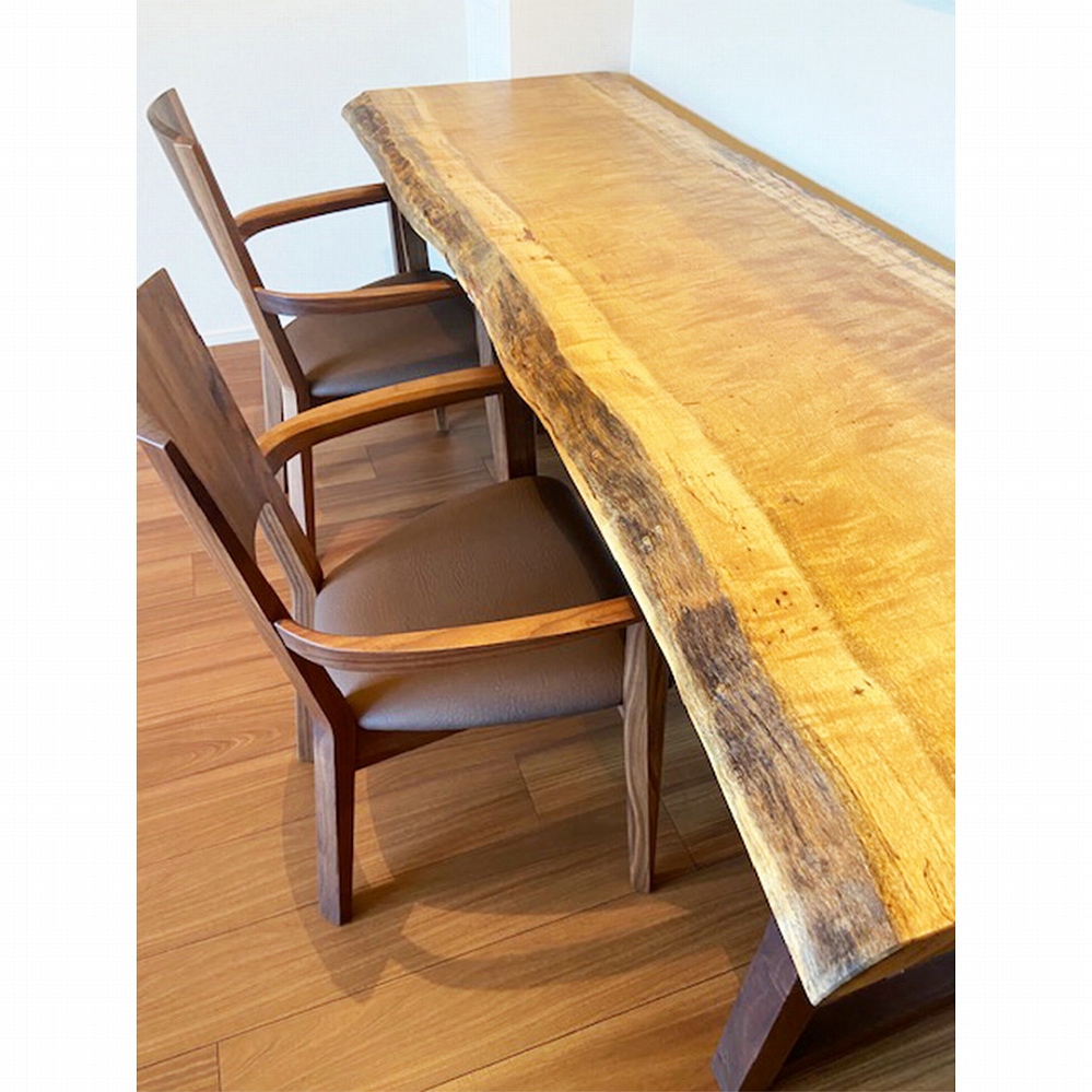 ウォールナット材の椅子も欅(ケヤキ)に負けじと存在感を出しています。