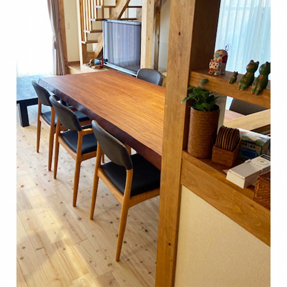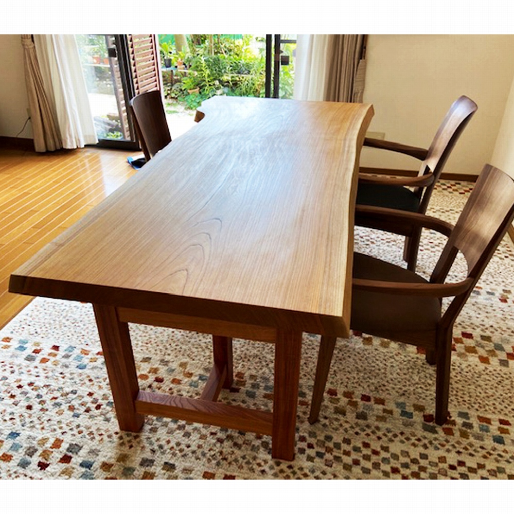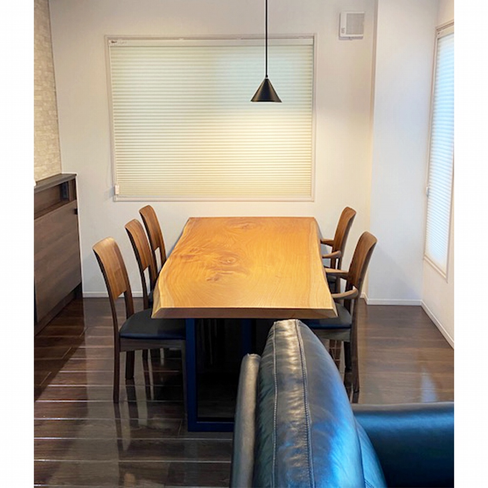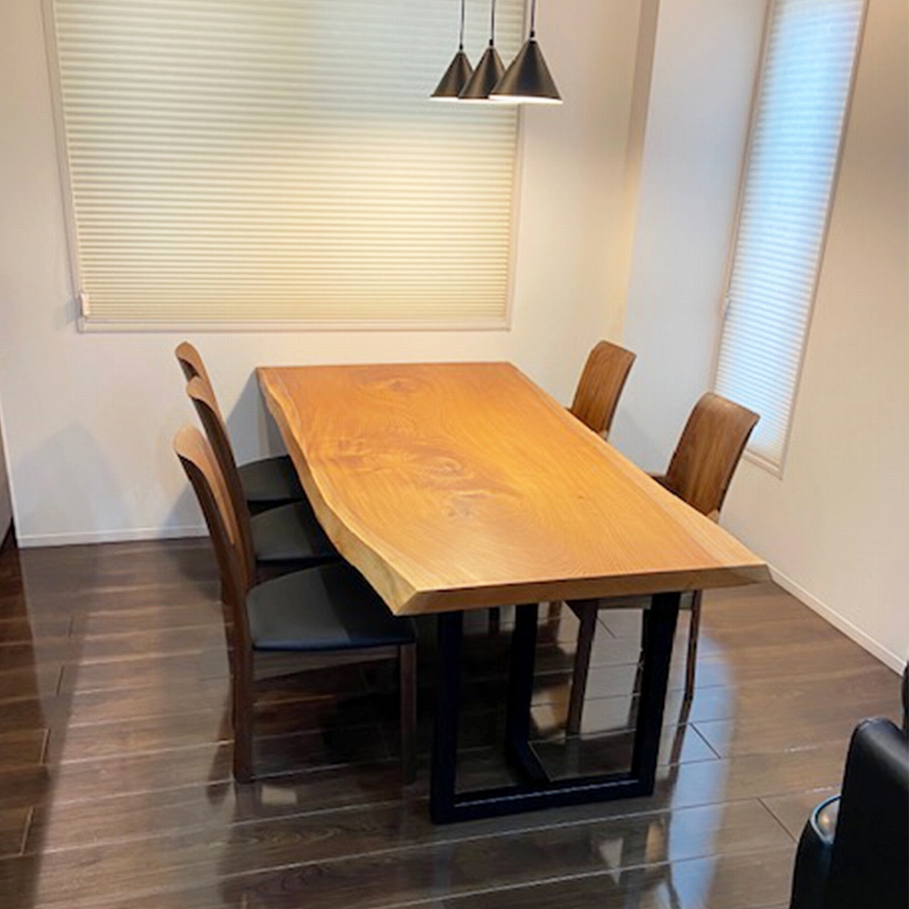 脚も同じケヤキの材でお作りできたので、より一層一体感のある素敵なダイニングに仕上がりました。