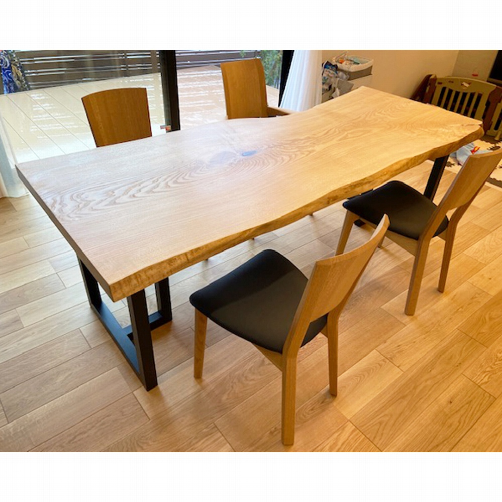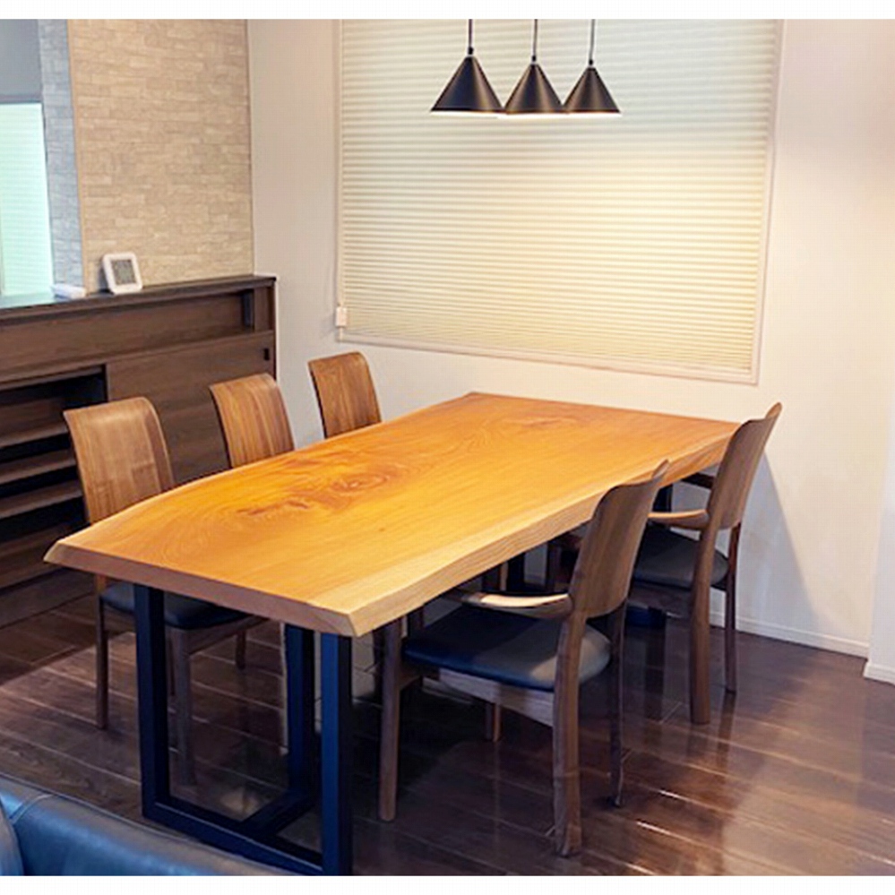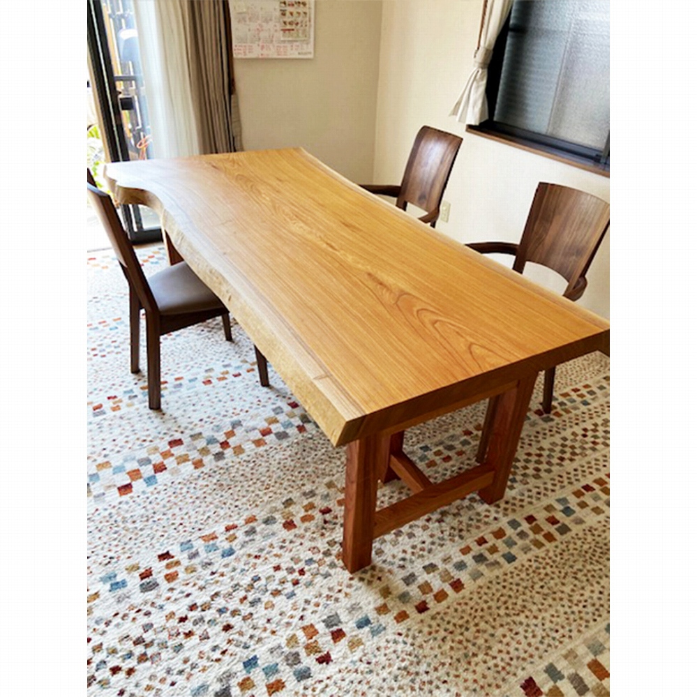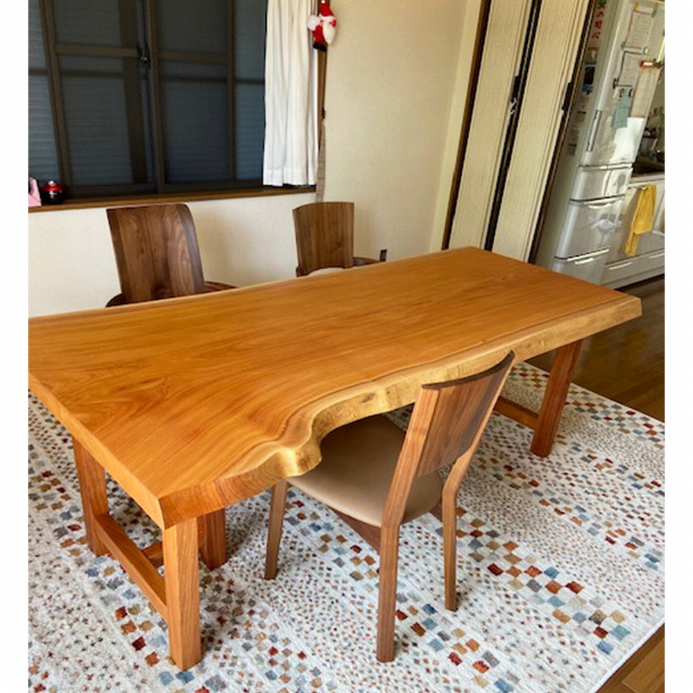 脚も同じケヤキの材でお作りできたので、より一層一体感のある素敵なダイニングに仕上がりました。
