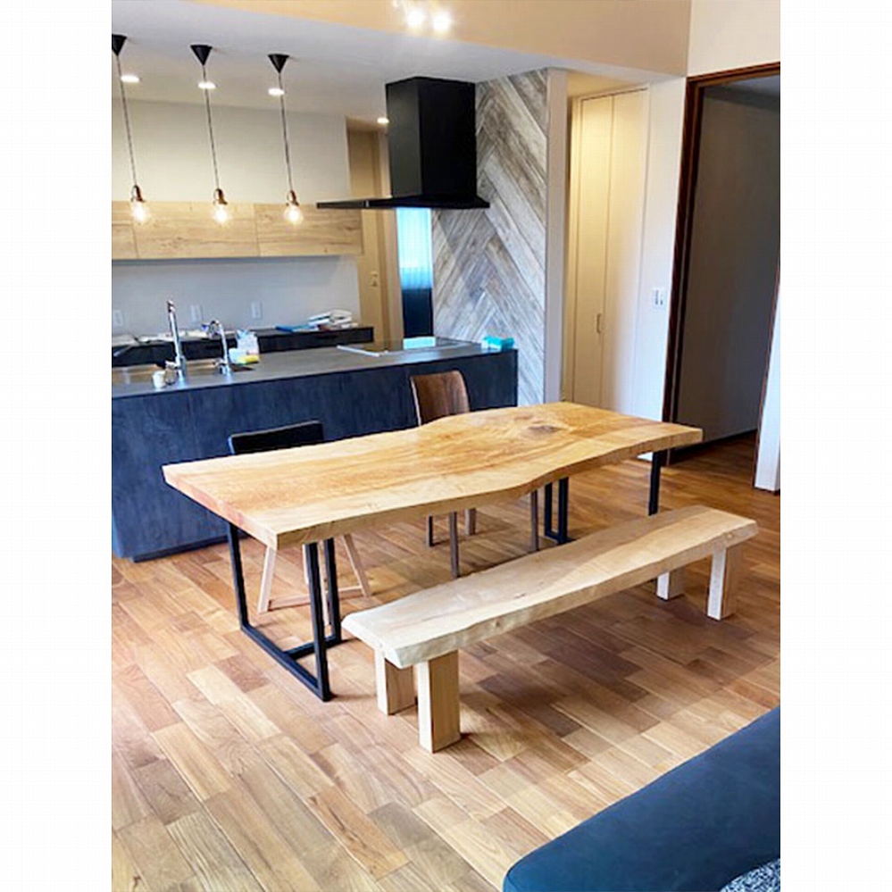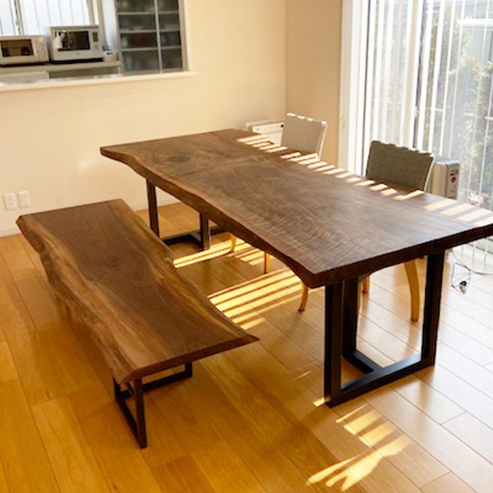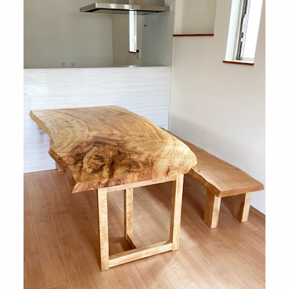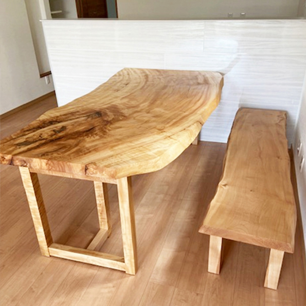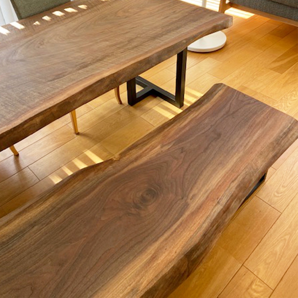 天板と合わせた、栃の脚と栃のベンチでナチュラルな仕上がりになりました。