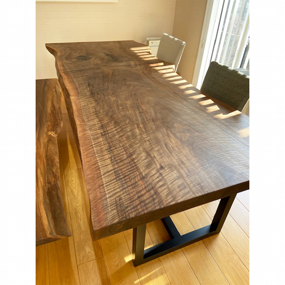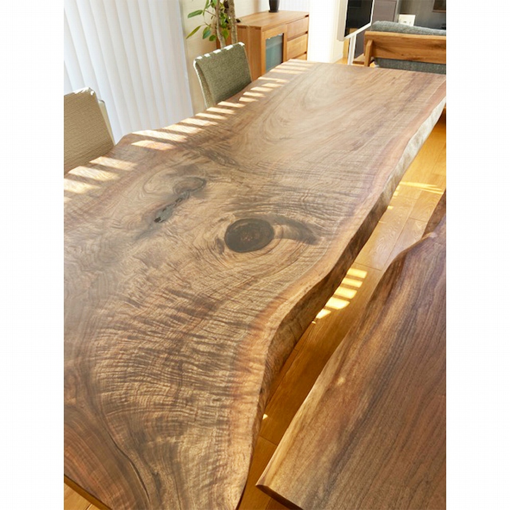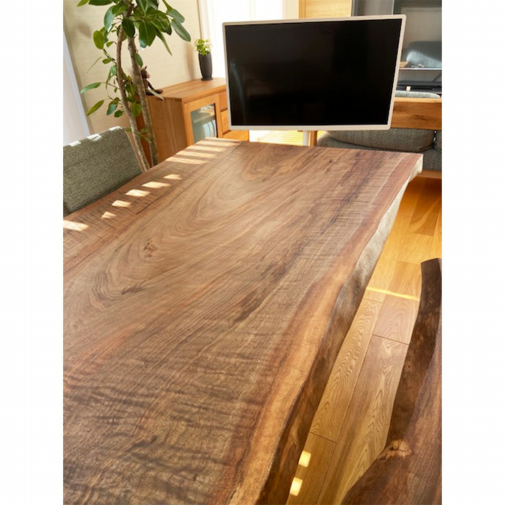 杢が交差して、木目と色合いが絶妙なウォールナット材の一枚板をお届けしました。