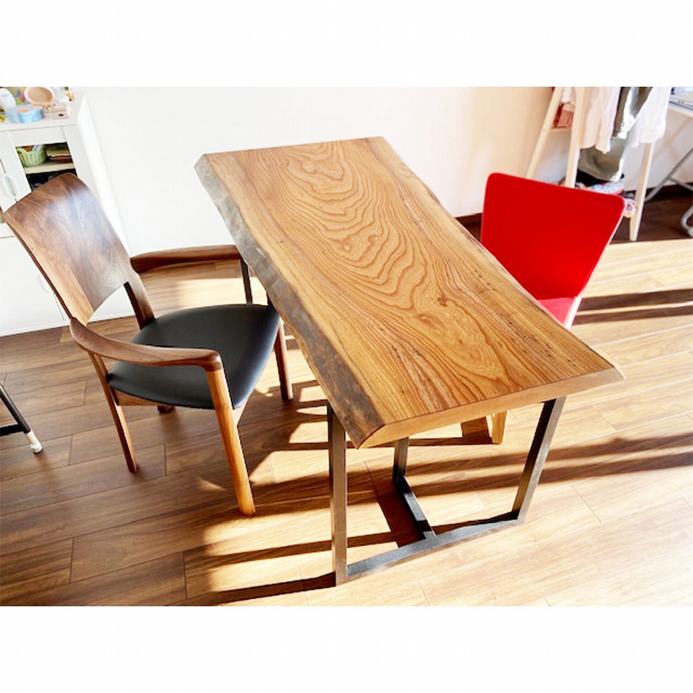 これから年数を経て、欅(ケヤキ)がもっと色合い深くなってくる頃には、ウォールナット材の椅子との色の違いもほぼ分からなくなっていることと思います。