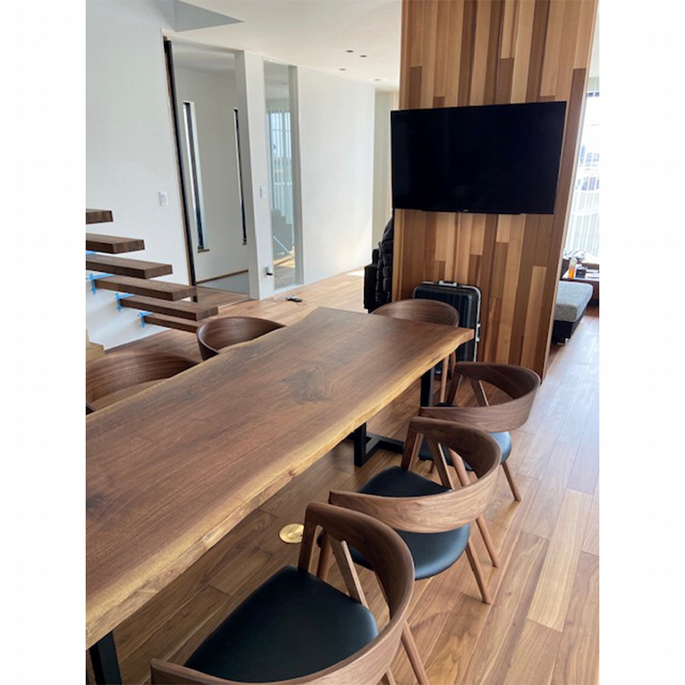 椅子もアクセントとしてウォールナット材を差し色にしました。