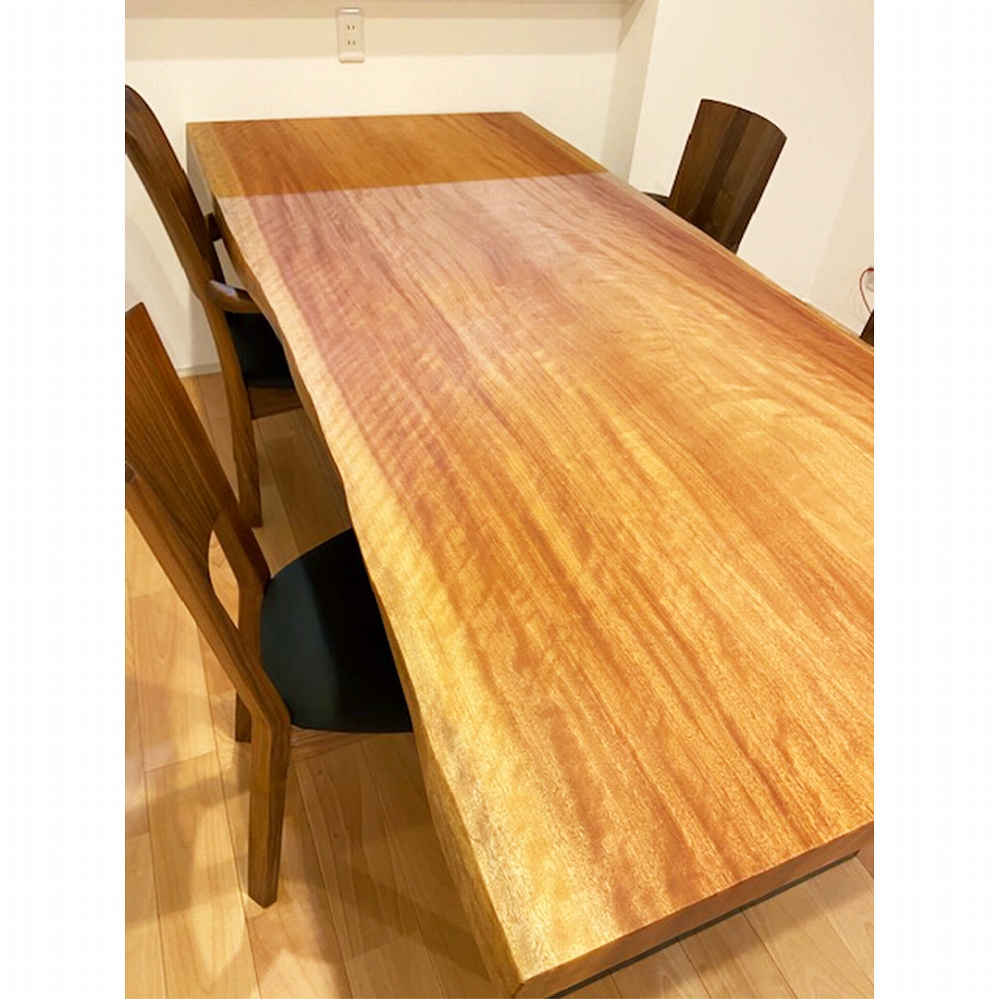 キラキラした杢がとっても綺麗なモビンギの一枚板で、誰が見ても目を奪われてしまいそうです。