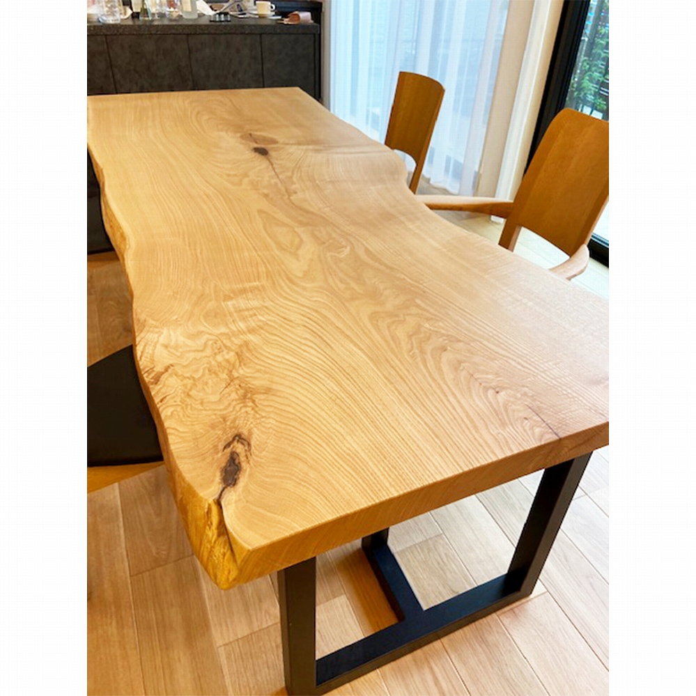 天然のままの形がユニークで美しい栃(トチ)の一枚板をお届けさせていただきました。