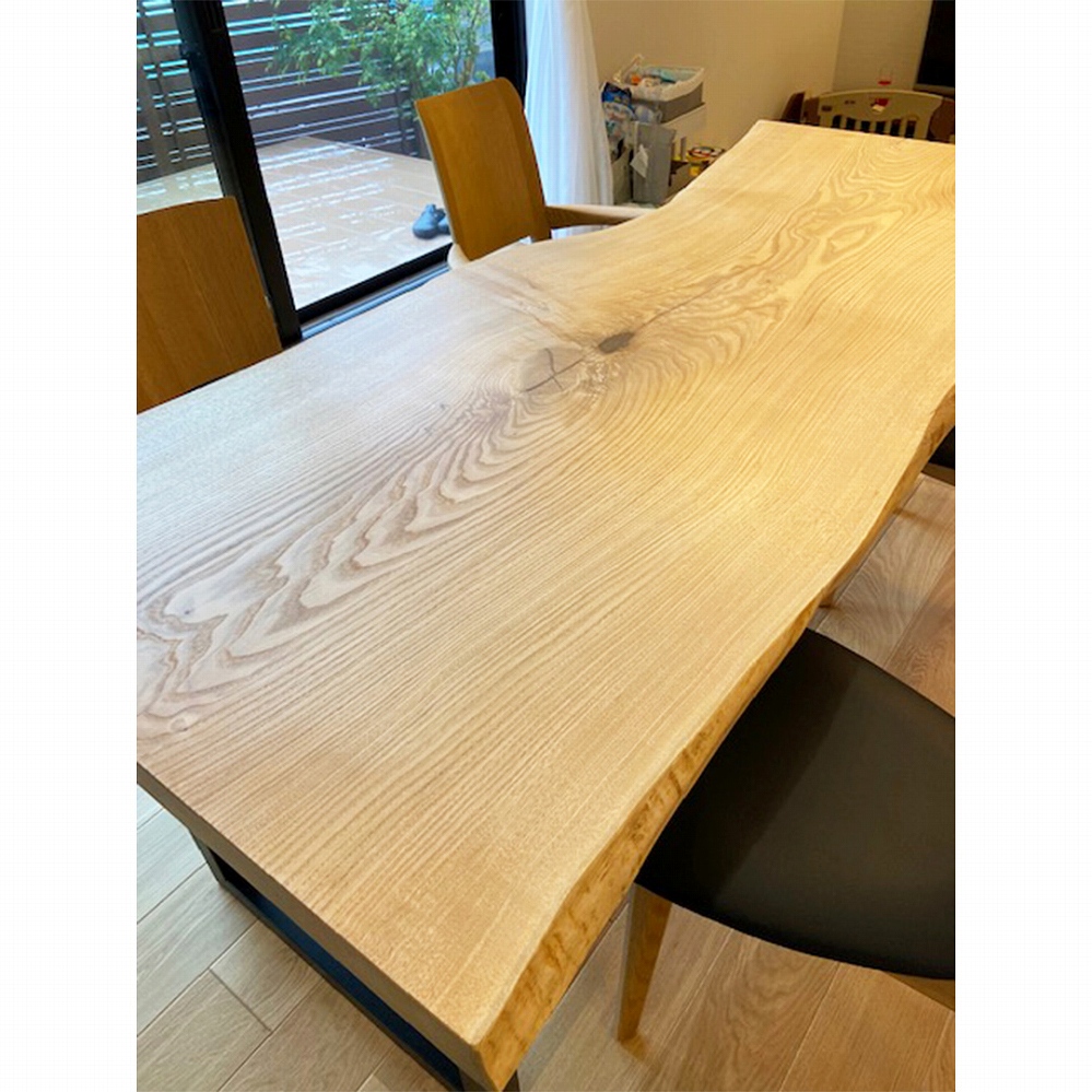 色白の明るい栃(トチ)の一枚板をお届けしました。