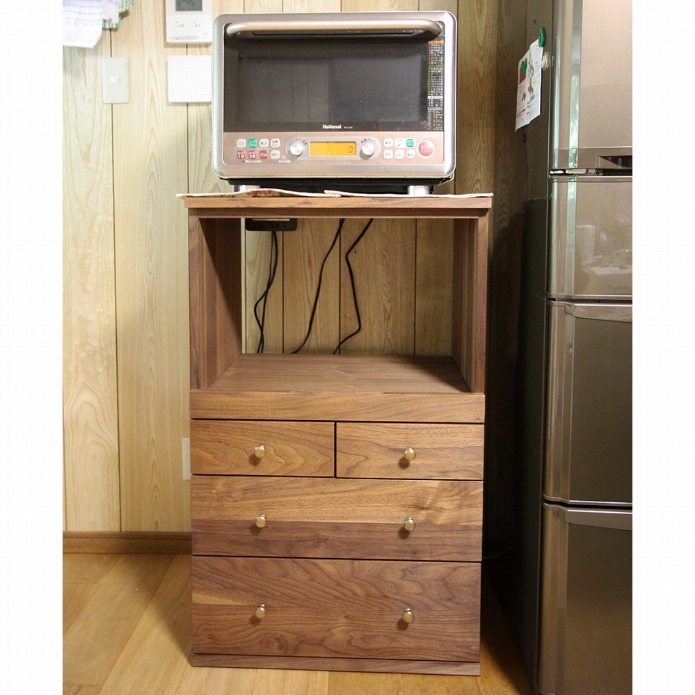 下の引き出しには収納に困るレンジのトレーなど底も深く計算され、