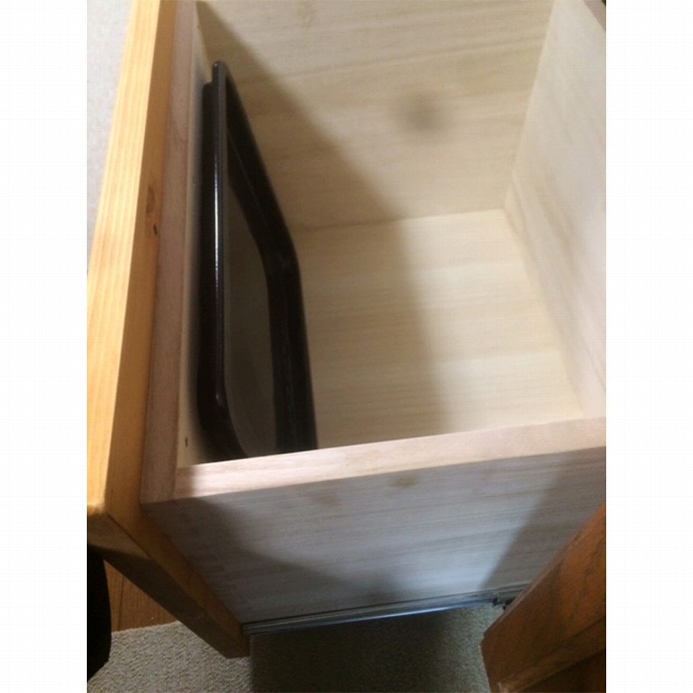 たっぷり入る引き出し収納と、ゴミ箱スペース用のオープンを設けいています。