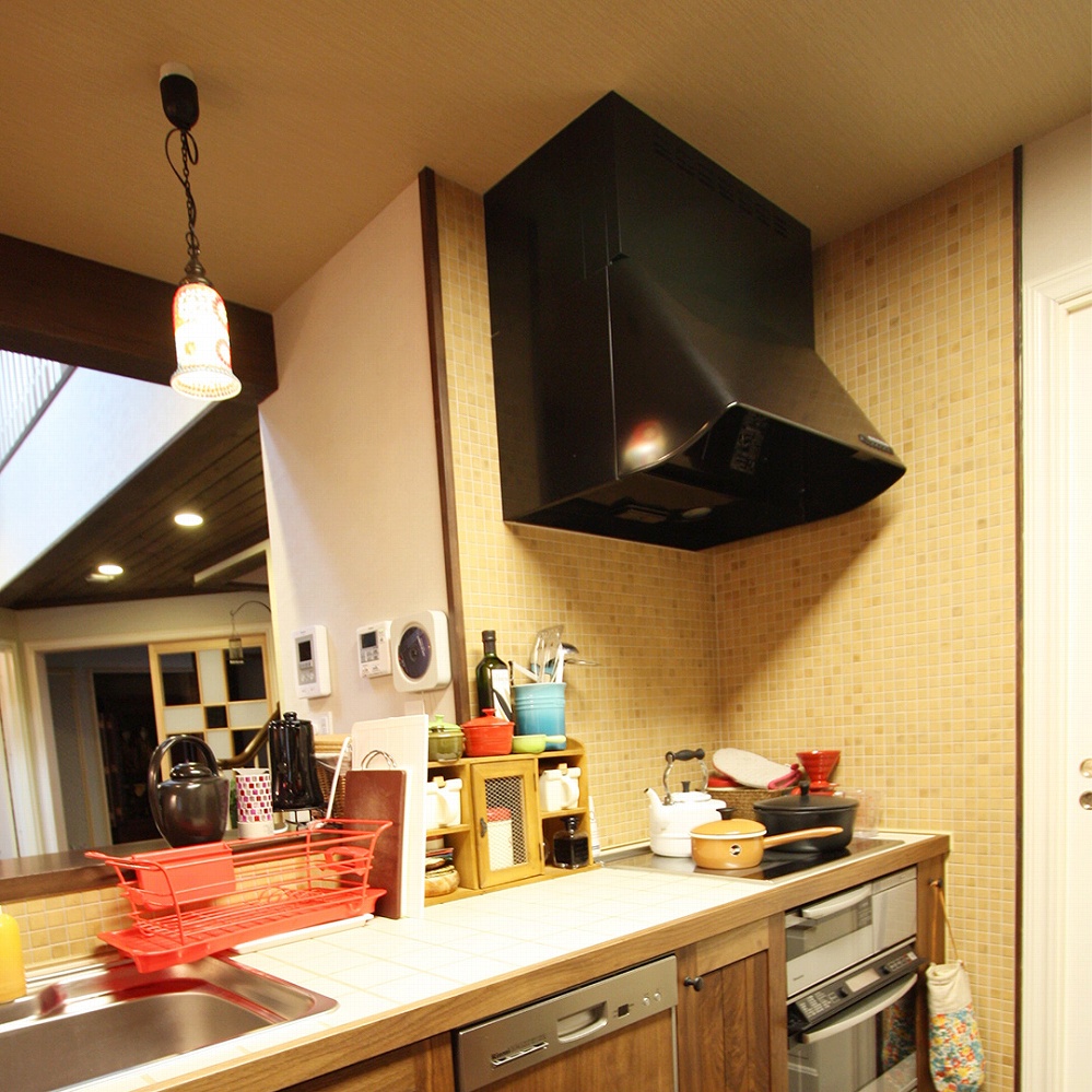 キッチン壁のタイルも良い風合いが出ていますよ。