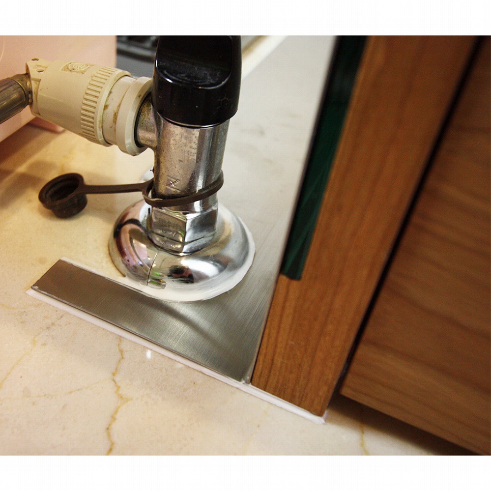 ちょうどコンロ側にはガスコックが出ており、ステンレスもコックに沿ってライン取りしました。