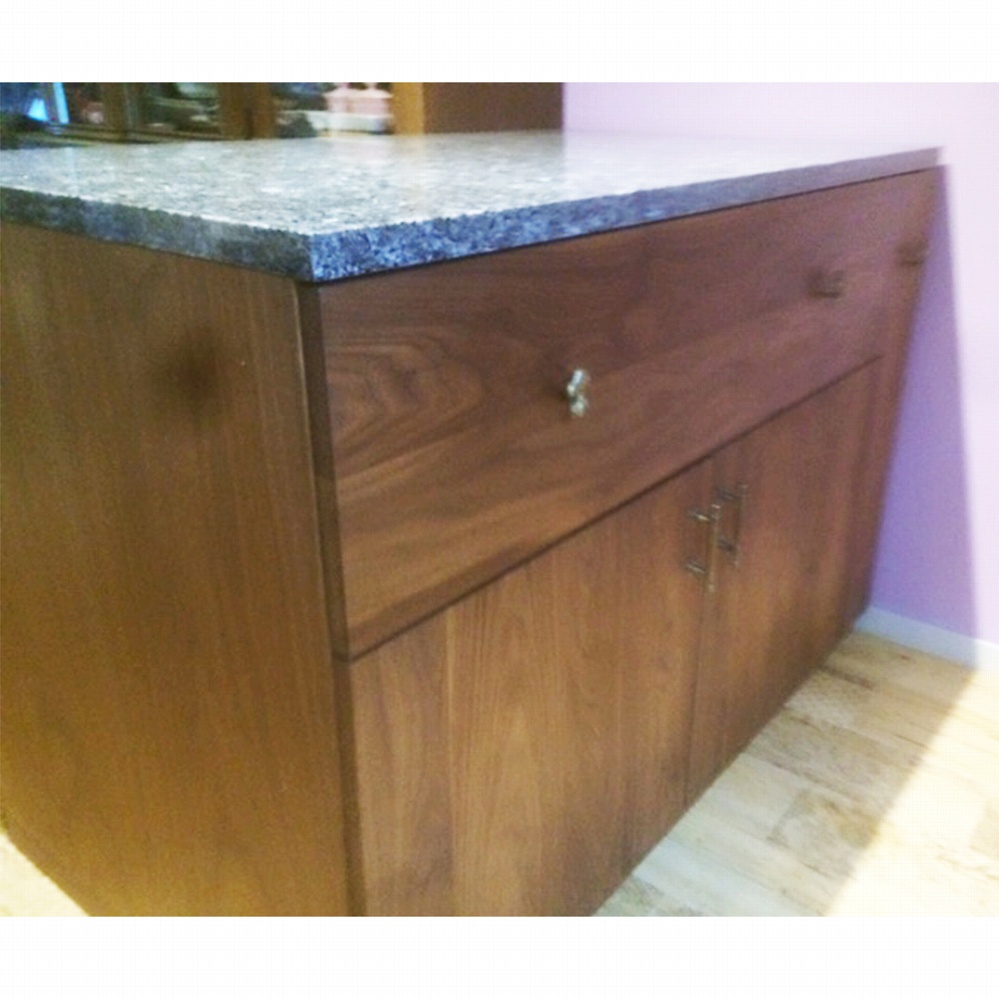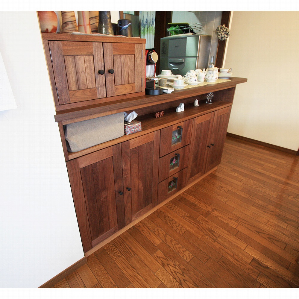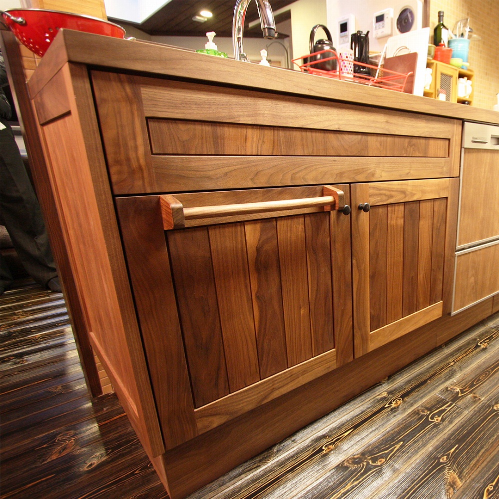 キッチンカウンターの下にブラックウォールナット材を使用した収納をお作りさせていただきました。