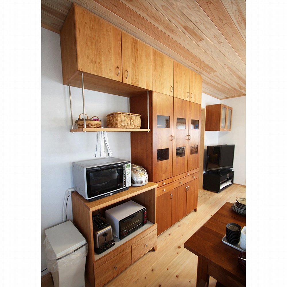 キッチンの後ろにはバックキャビネットを同材でお届け。